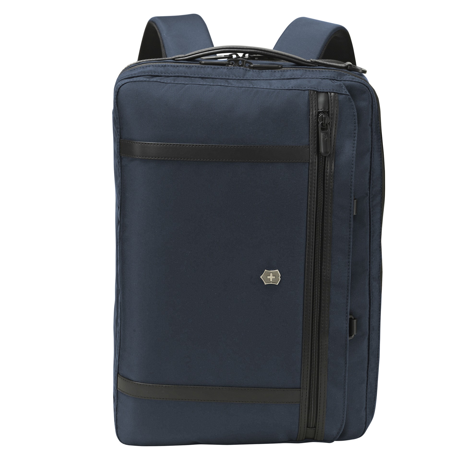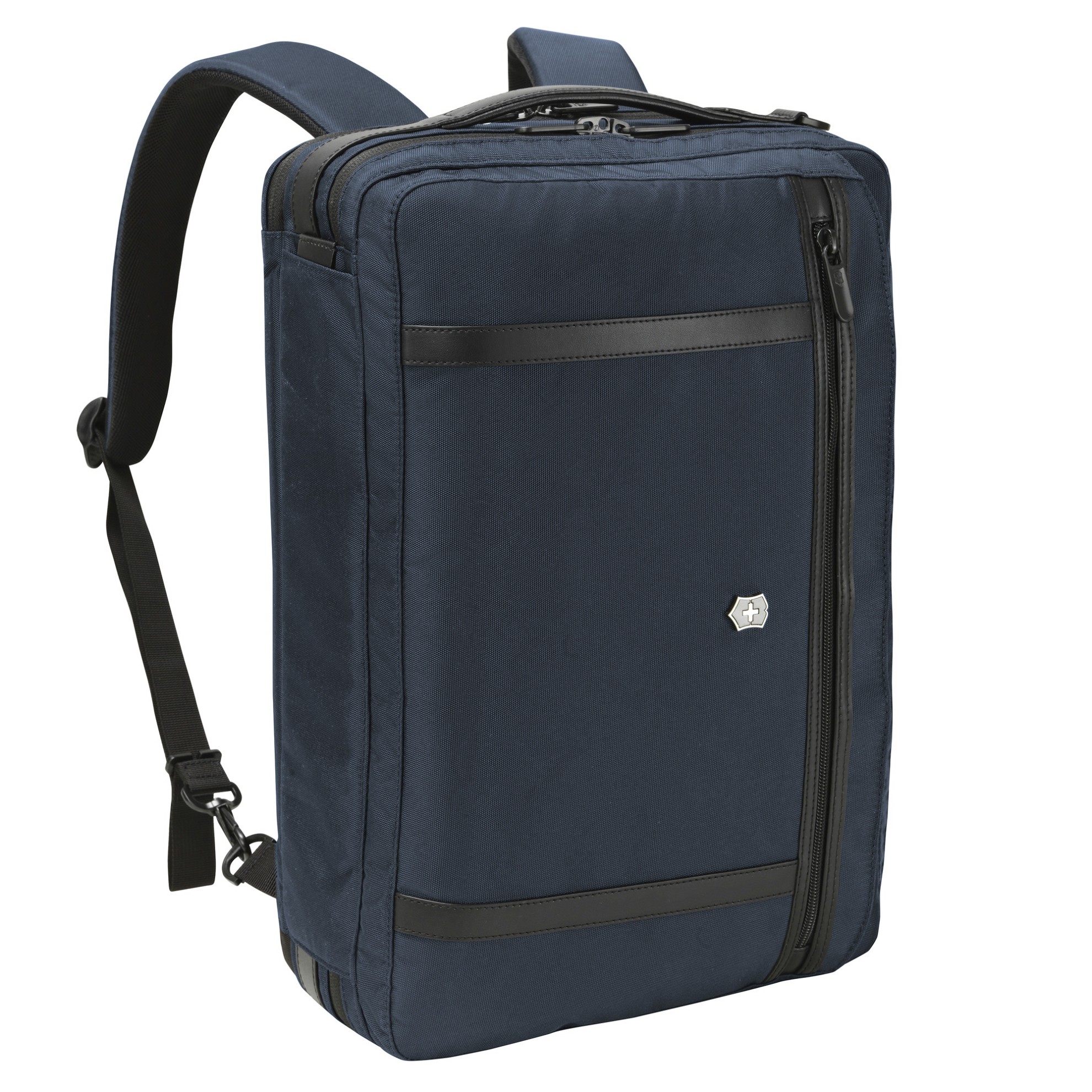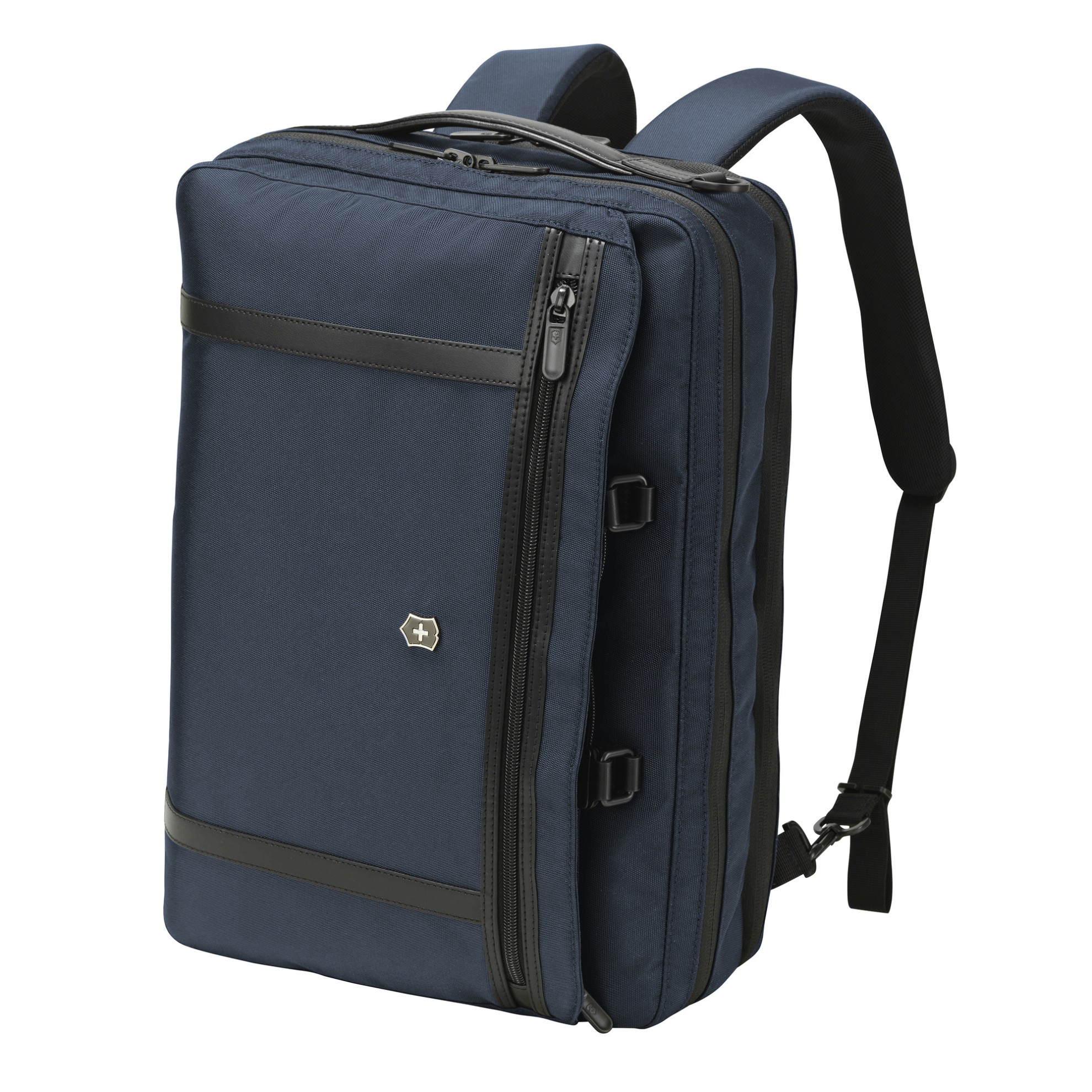 Aktovka a zároveň batoh z polyesteru v modročerném provedení s kapacitou 16 litrů.