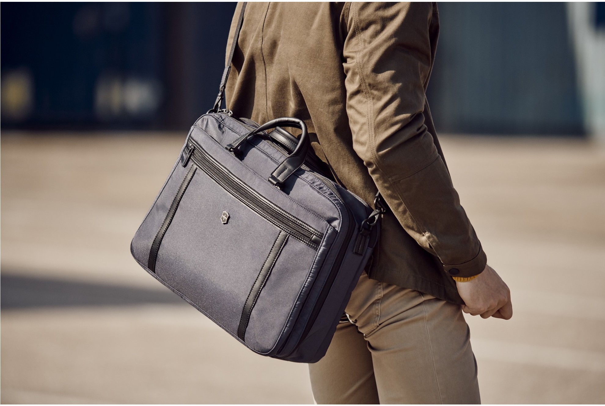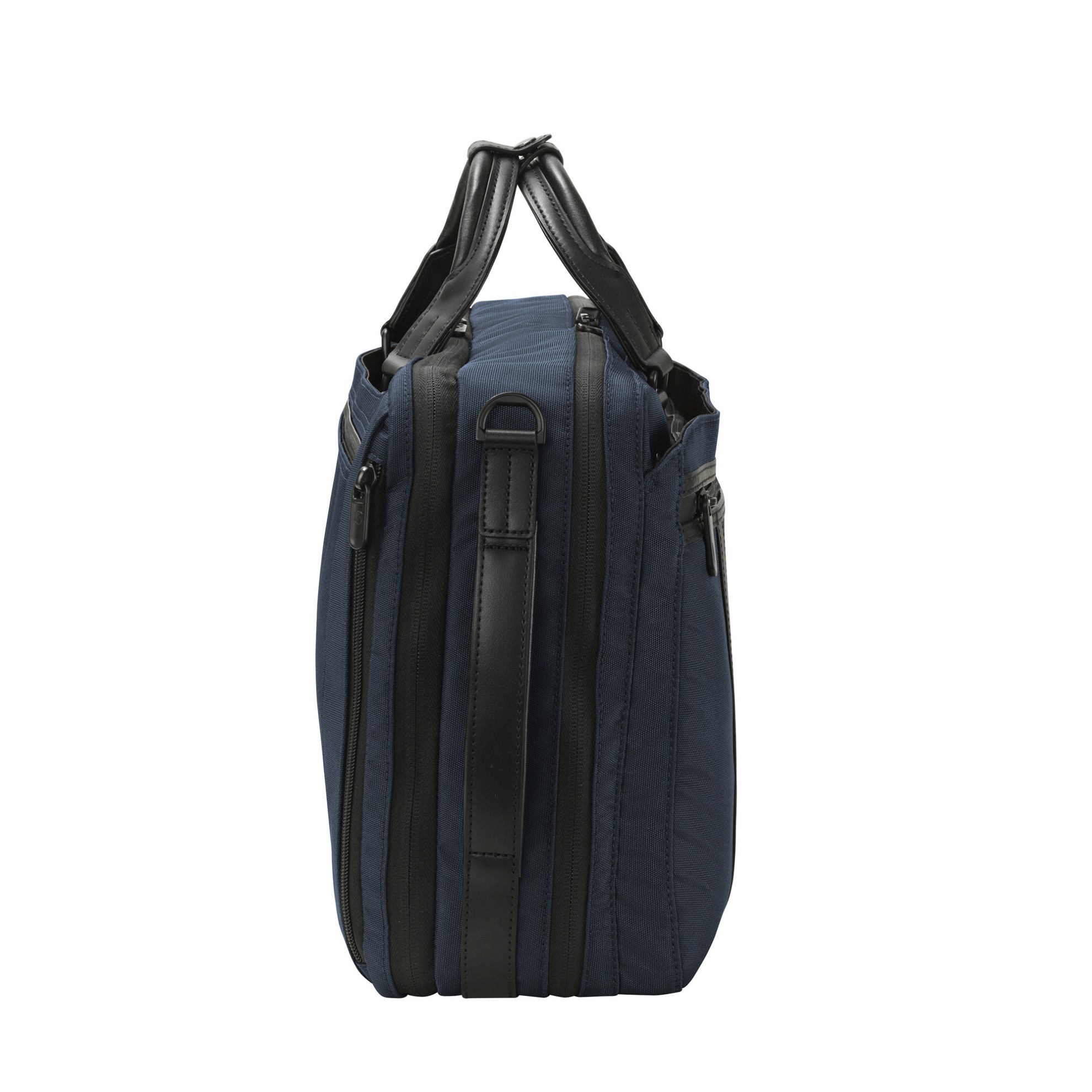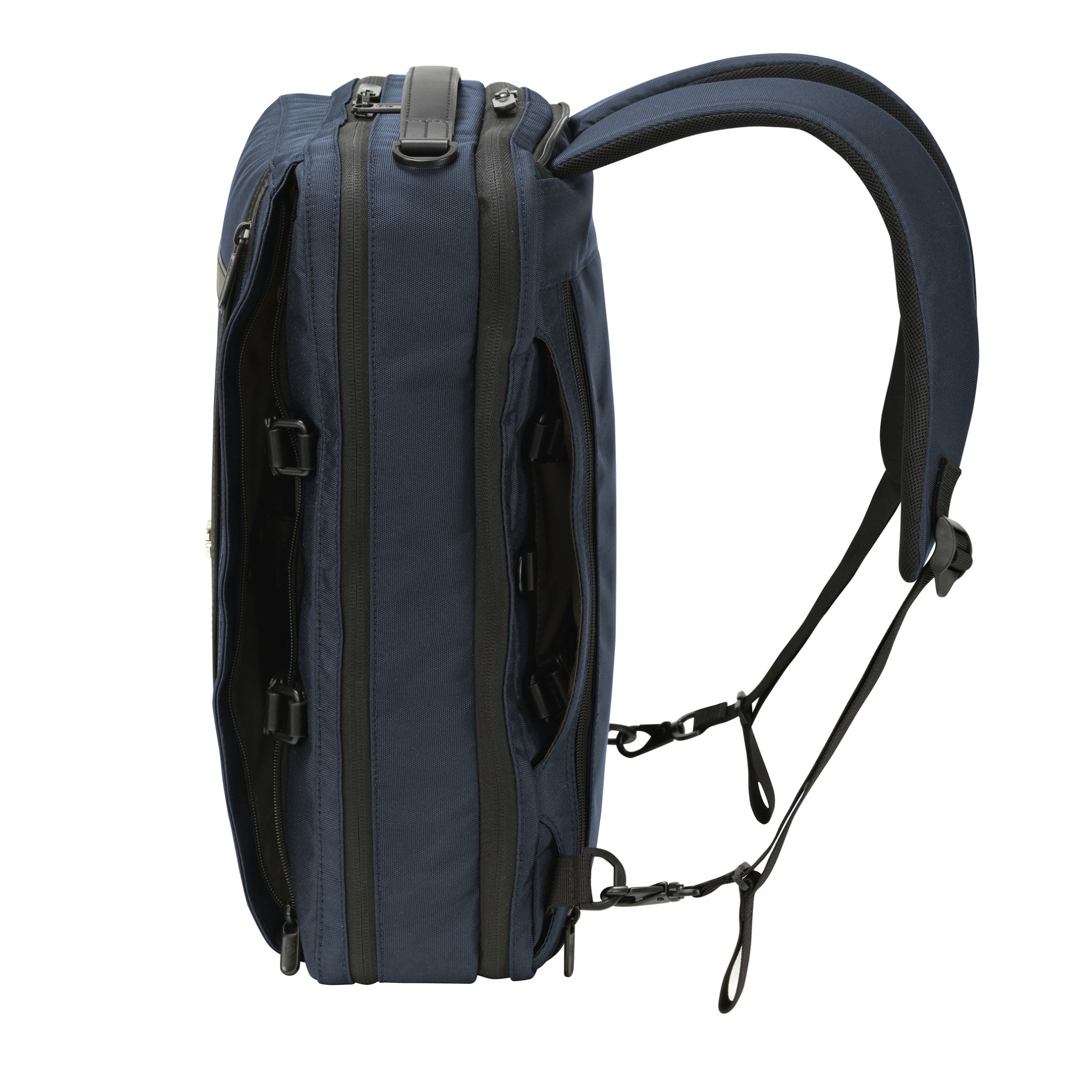 Aktovka a zároveň batoh z polyesteru v modročerném provedení s kapacitou 16 litrů.