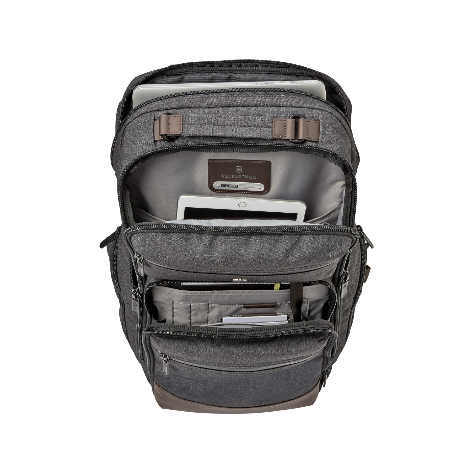 • Polstrovaná přihrádka na notebook do 17"/43 cm • Polstrovaný zadní panel i ramenní popruhy • Měkké horní madlo • Přihrádka na čtečku el. knih či tablet a menší přihrádky na drobnosti