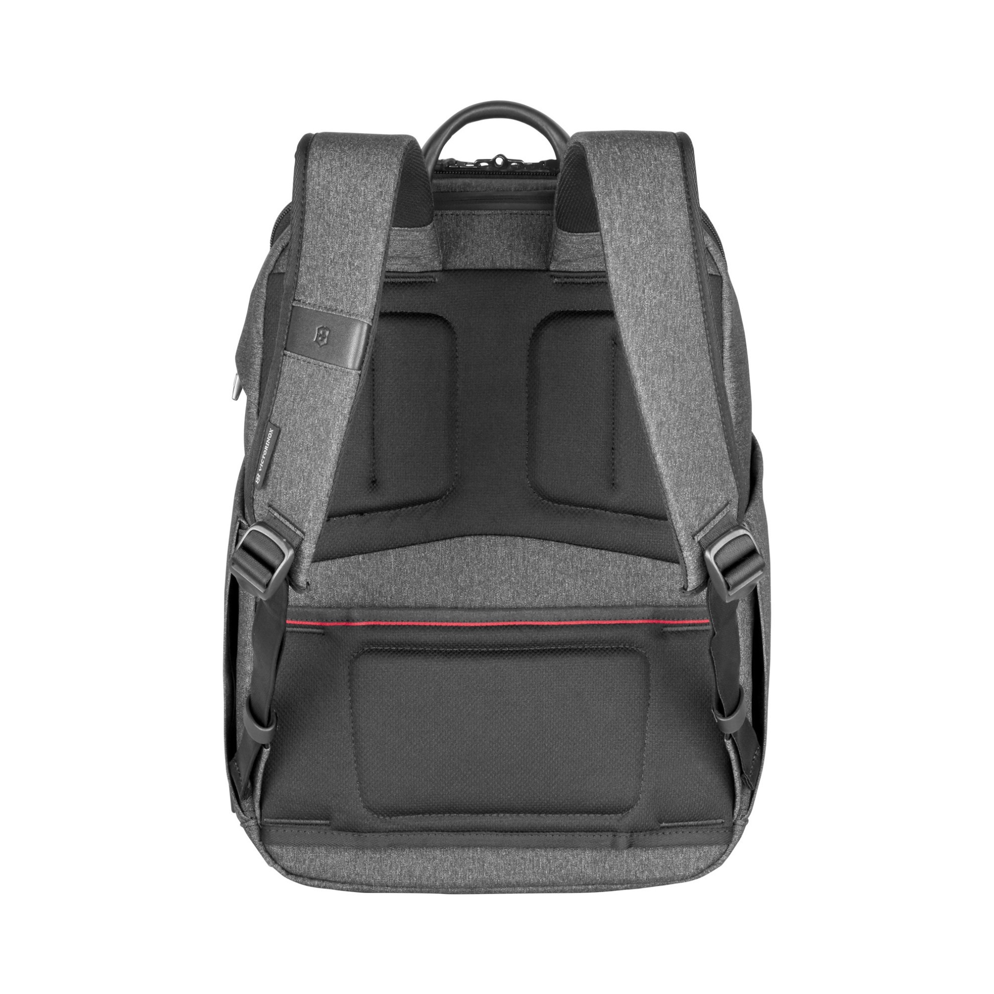 Batoh z polyesteru s koženými prvky v černošedém provedení s kapacitou 17 litrů.