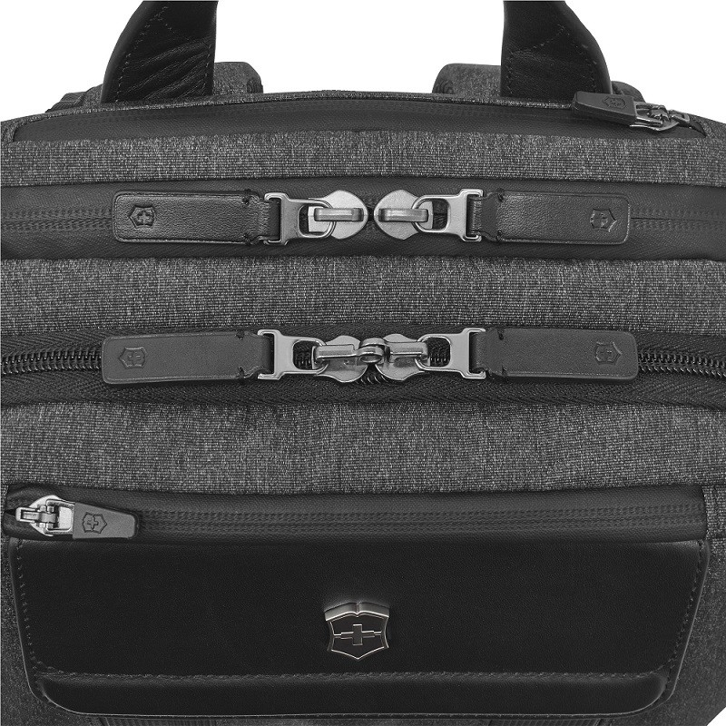Batoh z polyesteru s koženými prvky v černošedém provedení s kapacitou 17 litrů.