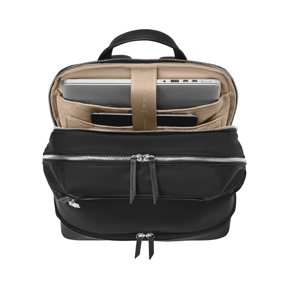 Batoh Victorinox s kapacitou 18 litrů, s kapsou na 15" notebook a 10" tablet. Součástí je také vyjímatelné pouzdro stejné barvy.