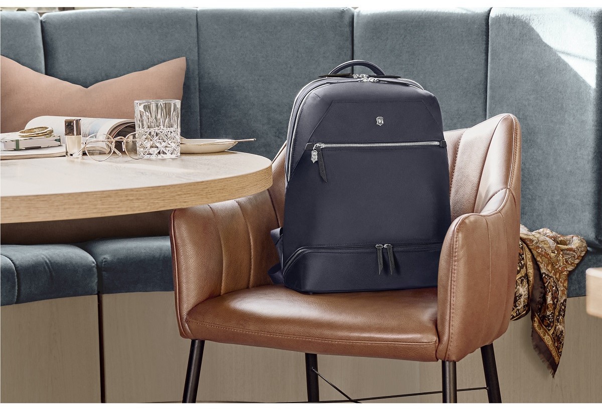 Batoh Victorinox s kapacitou 18 litrů, s kapsou na 15" notebook a 10" tablet. Součástí je také vyjímatelné pouzdro stejné barvy.