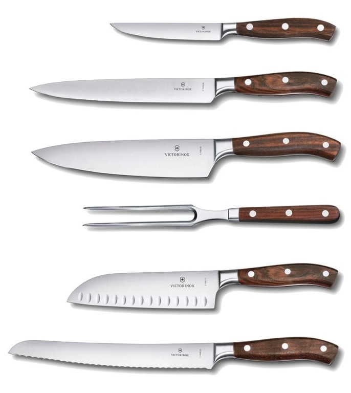 Blok z bukového dřeva s 5 kovanými noži a vidlicí s rukojeťmi z palisandrového dřeva: