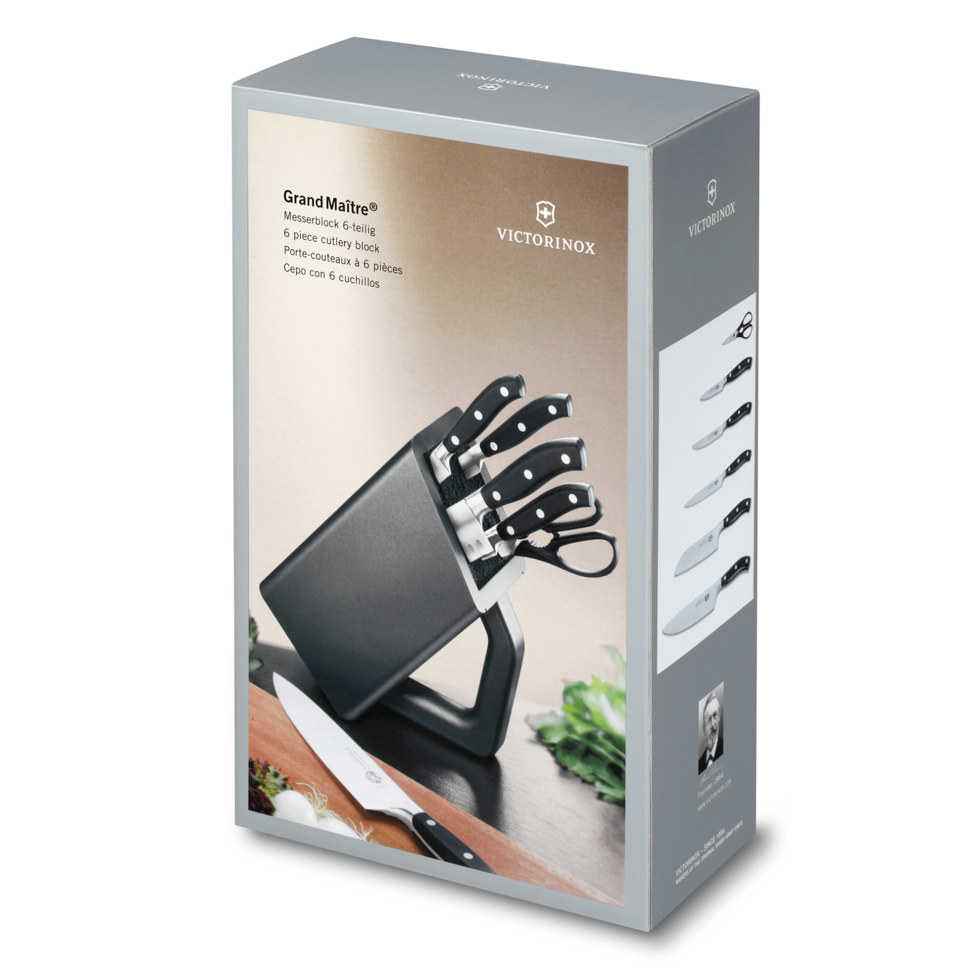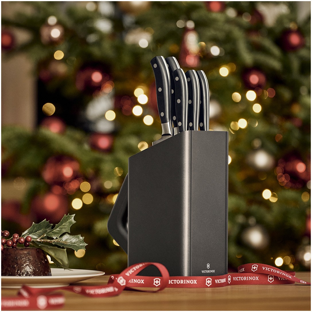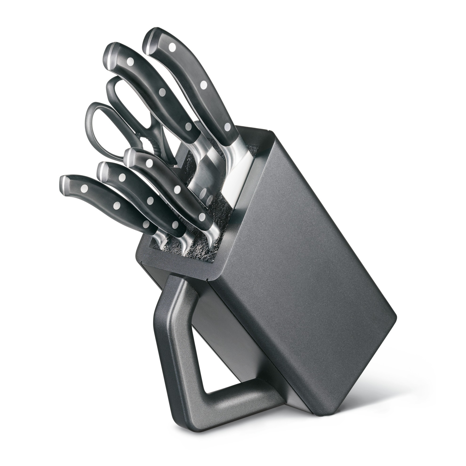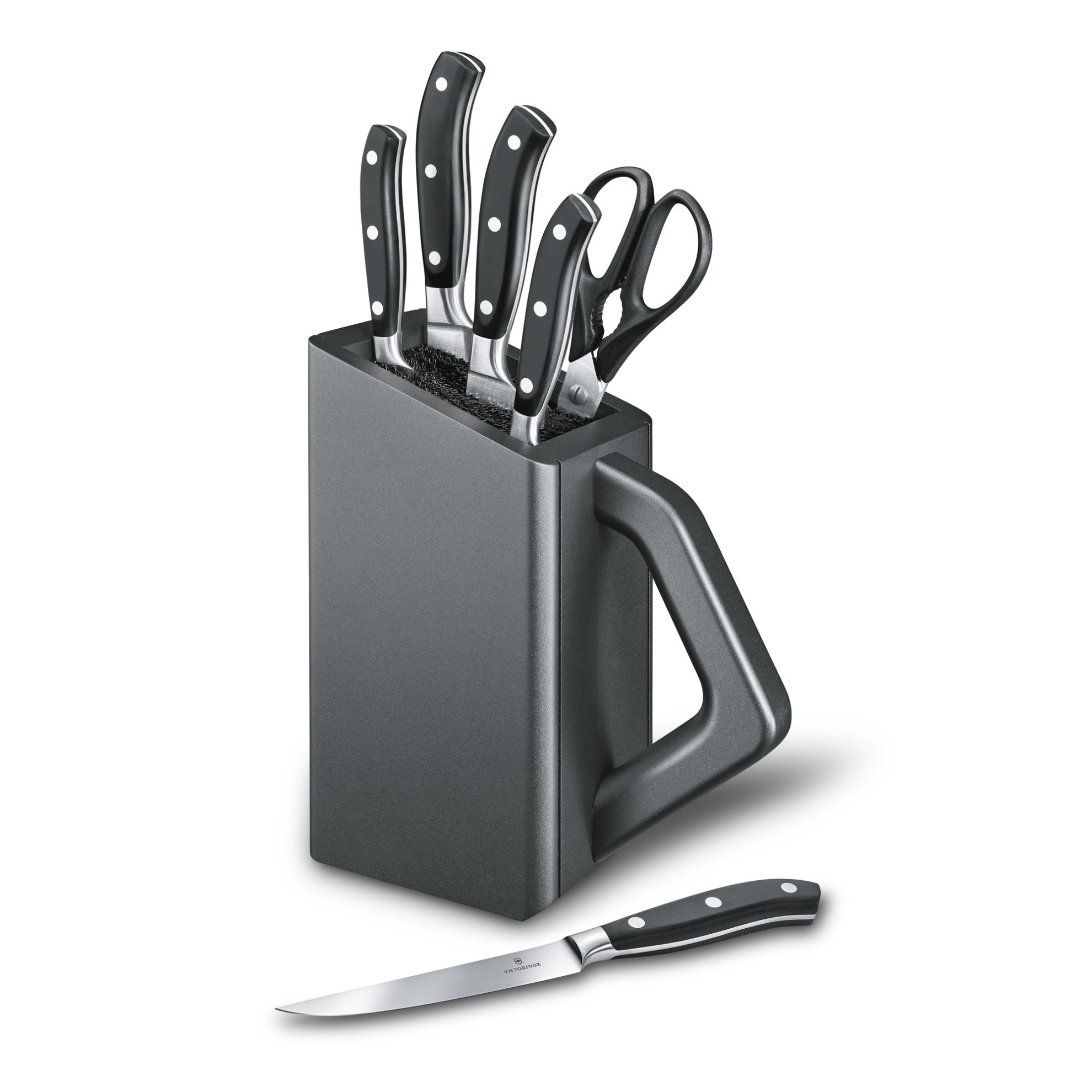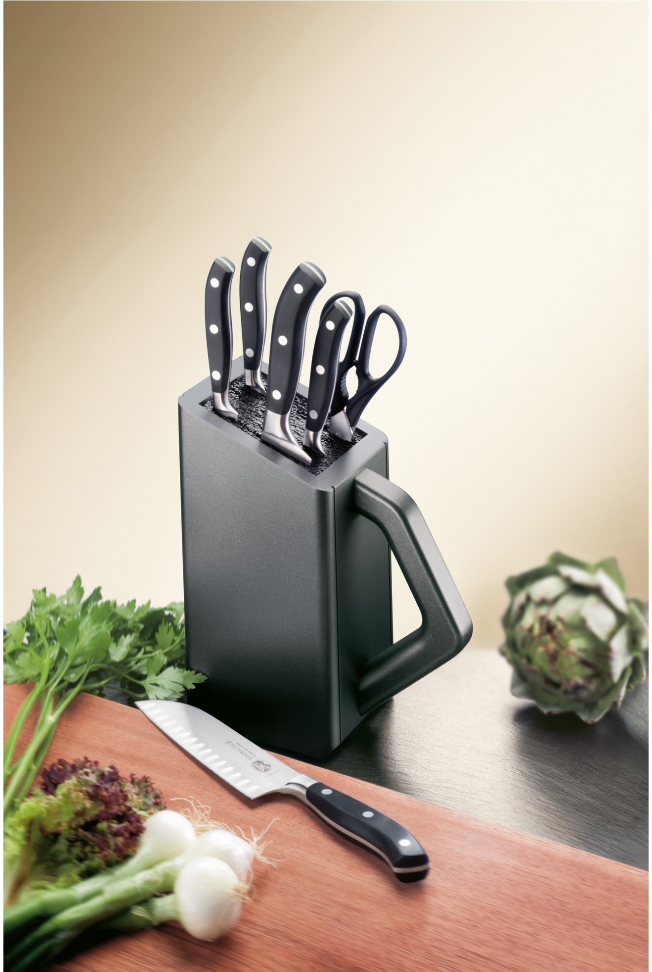 Blok z bukového dřeva lakovaného antracitem s 5 kovanými noži a nůžkami