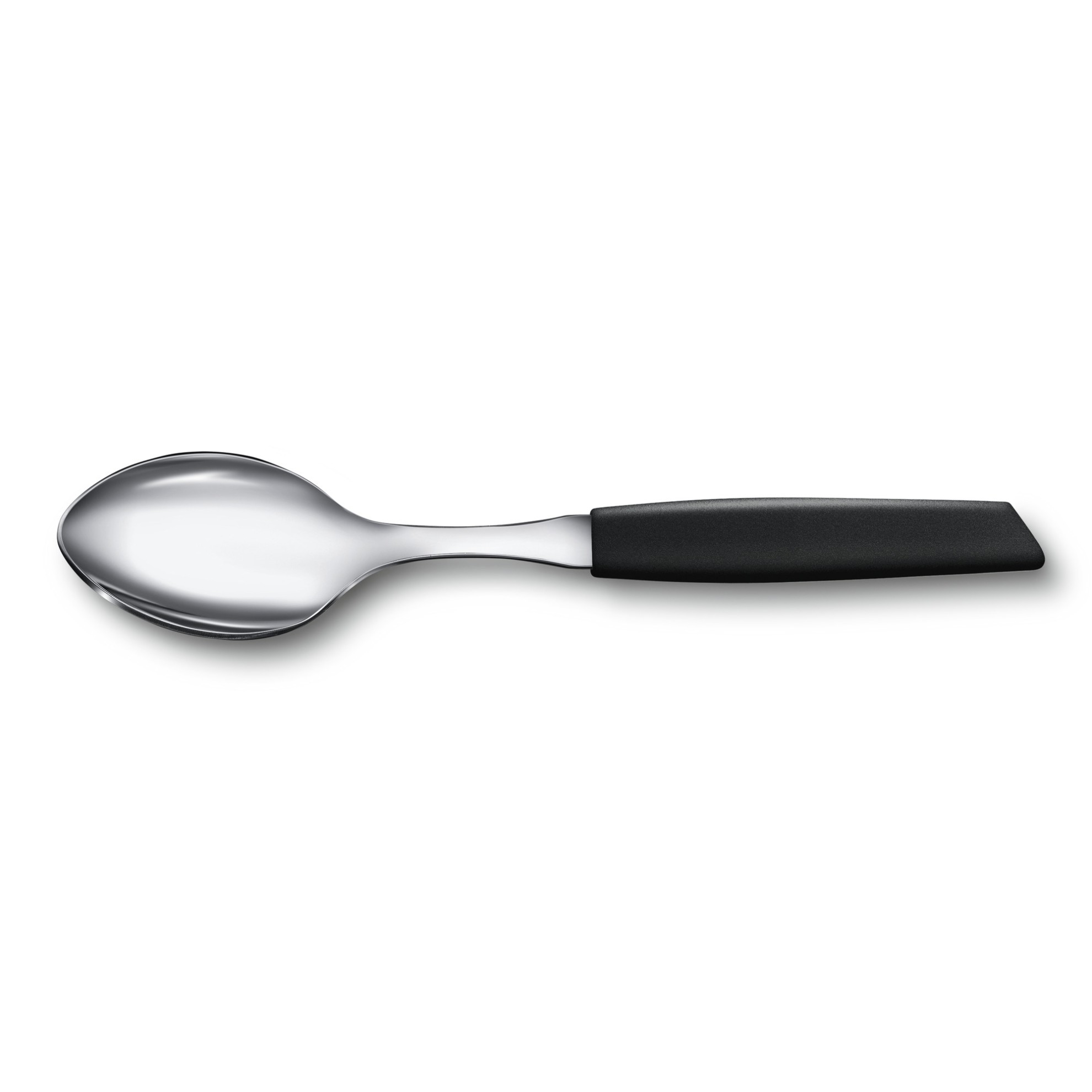Čajová lžička z řady Swiss Modern je vyrobena z kvalitní nerezové oceli a díky tomu také vysoce odolná proti opotřebení. Rukojeť ze syntetického materiálu je lehká a dobře sedí v ruce. Možno mýt v myčce. Celková délka: 14,6 centrimetru