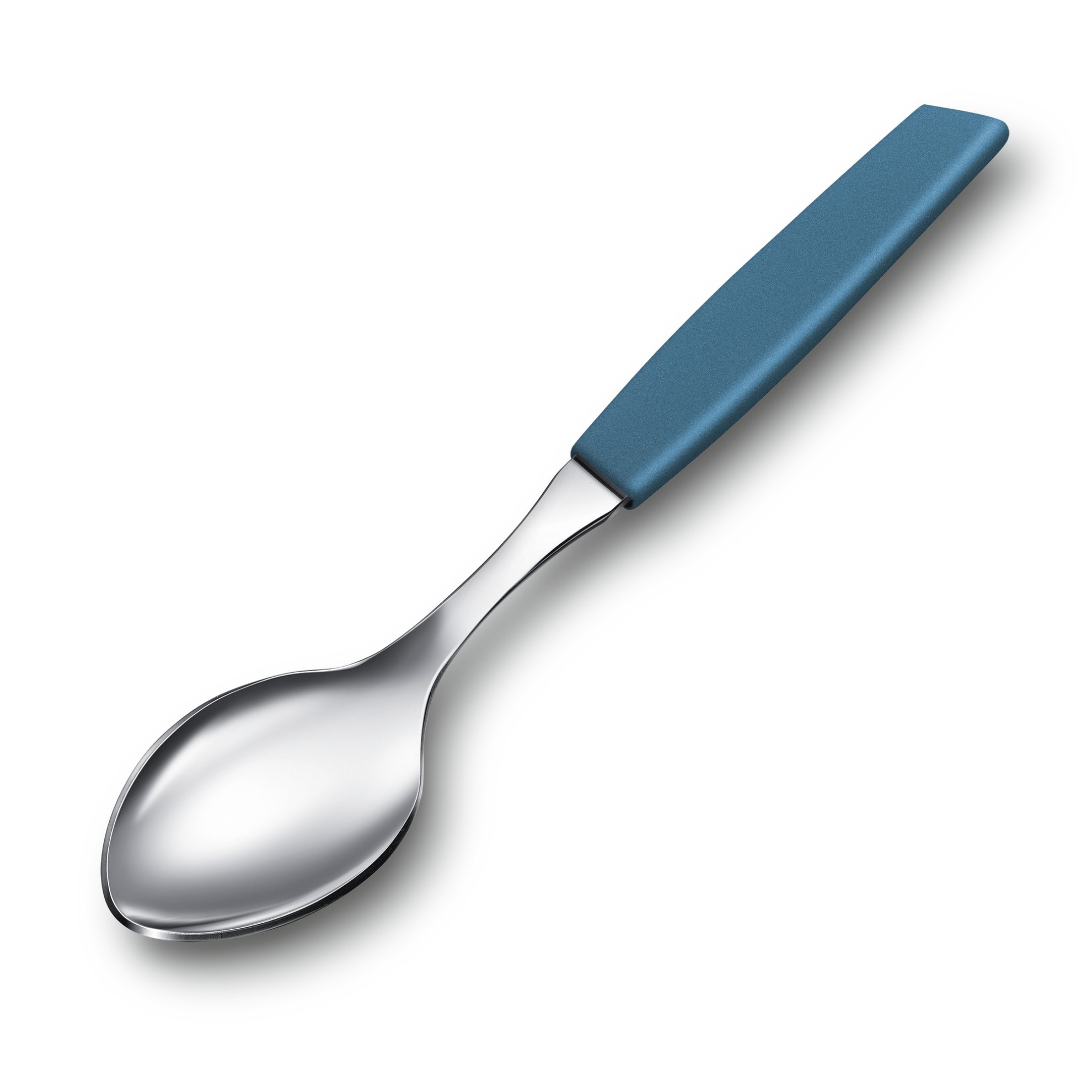 Čajová lžička z řady Swiss Modern je vyrobena z kvalitní nerezové oceli a díky tomu také vysoce odolná proti opotřebení. Rukojeť ze syntetického materiálu v modré barvě je lehká a dobře sedí v ruce. Možno mýt v myčce. Celková délka: 14,6 centrimetru