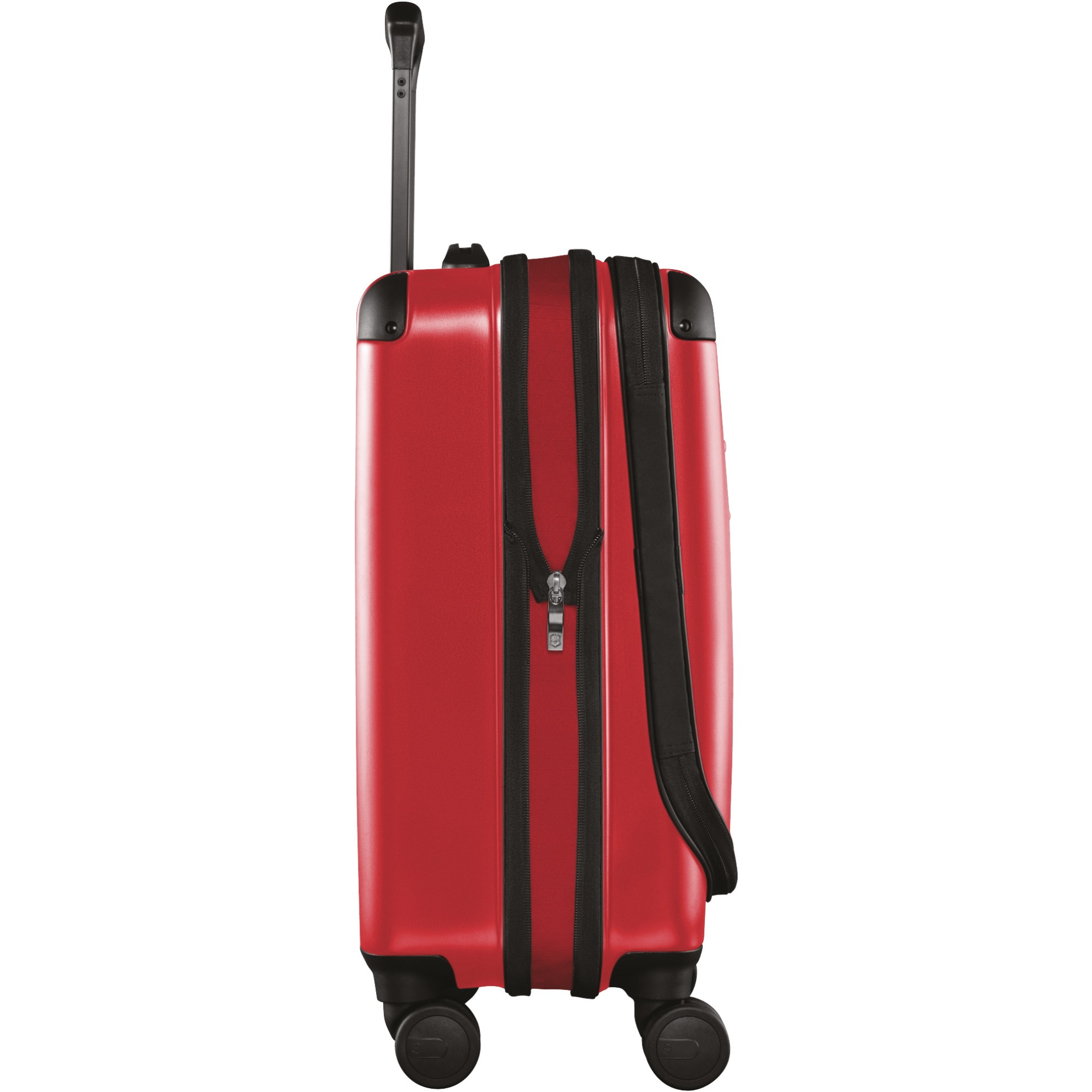 Lehké a odolné kabinové zavazadlo z polykarbonátu v červené barvě s kapacitou 32 litrů.