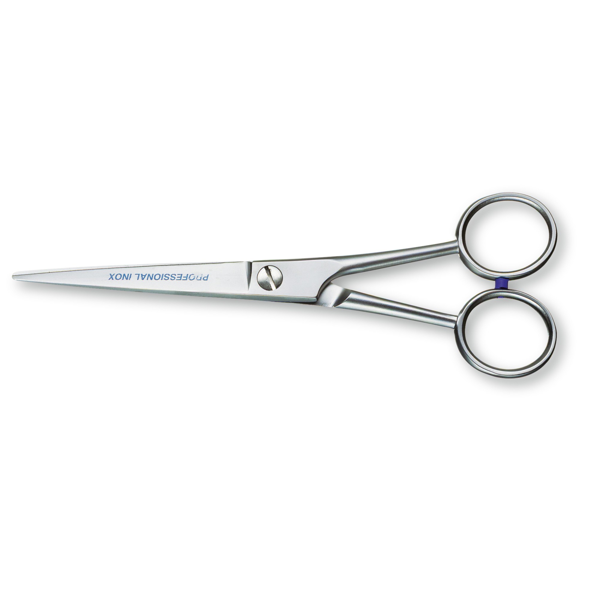 Jemně zoubkované ocelové kadeřnické nůžky dlouhé 15 centimetrů.