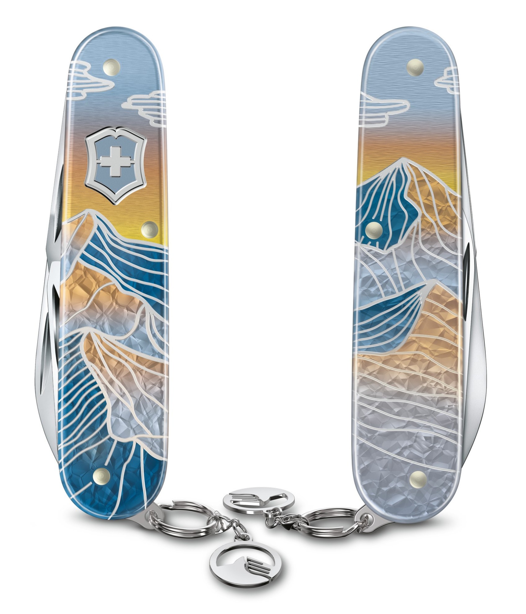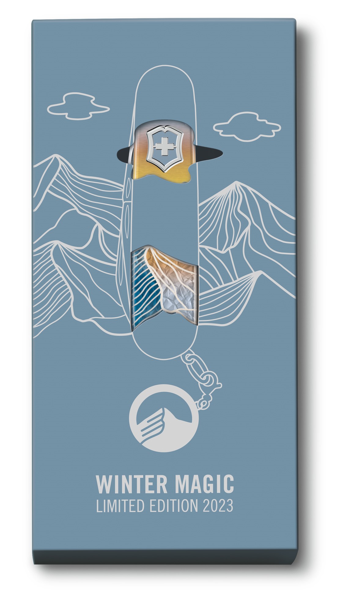 Přichází již páté zrození zimního kouzla v podobě kapesního nože, tentokrát ve stylu Cadet. Nová verze kapesního nože Winter Magic v limitované edici pro rok 2023 je stejně umělecky špičková jako sběratelská. Tento jedinečný kousek je ideálním dárkem pro milovníky zimních dobrodružství nebo nadšence značky Victorinox. Je inspirován krásou a majestátností zasněžených hor a představuje design zobrazující hory v zářivě modrých a kontrastních zlatých odstínech. Pomocí složitých detailů a jedinečného vzoru je na aloxových střenkách nože zobrazena podstata zimy v celé její 3D kráse. Dokonale sladěný přívěsek dodává noži další prvek elegance. Je odnímatelný a vyrobený z hypoalergenních materiálů šetrných k pokožce a tvoří krásný doplněk zdobený horskou krajinou. Limitovaná edice Alox Winter Magic 2023 je celosvětově omezena na pouhých 10 000 kusů a je dodávána ve stylové dárkové krabičce.