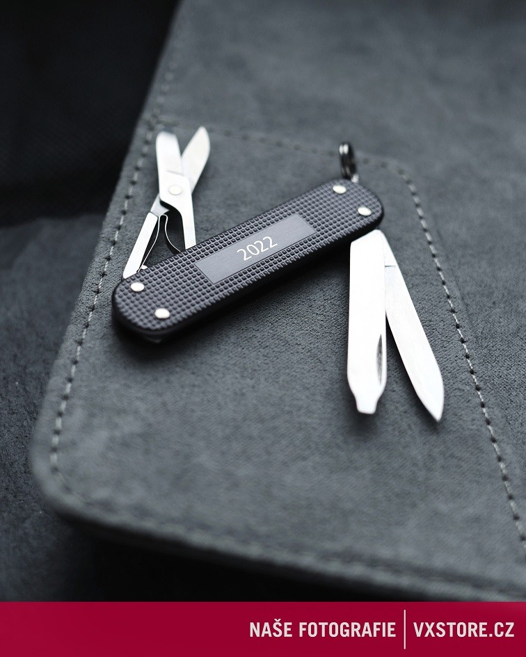 Malý kapesní nůž Victorinox s povrchovou úpravou procesem zvaným eloxování je elegantním doplňkem, stejně tak i plnohodnotným nástrojem vybaveným 5 funkcemi. Jedná se o limitovanou edici pro rok 2022.