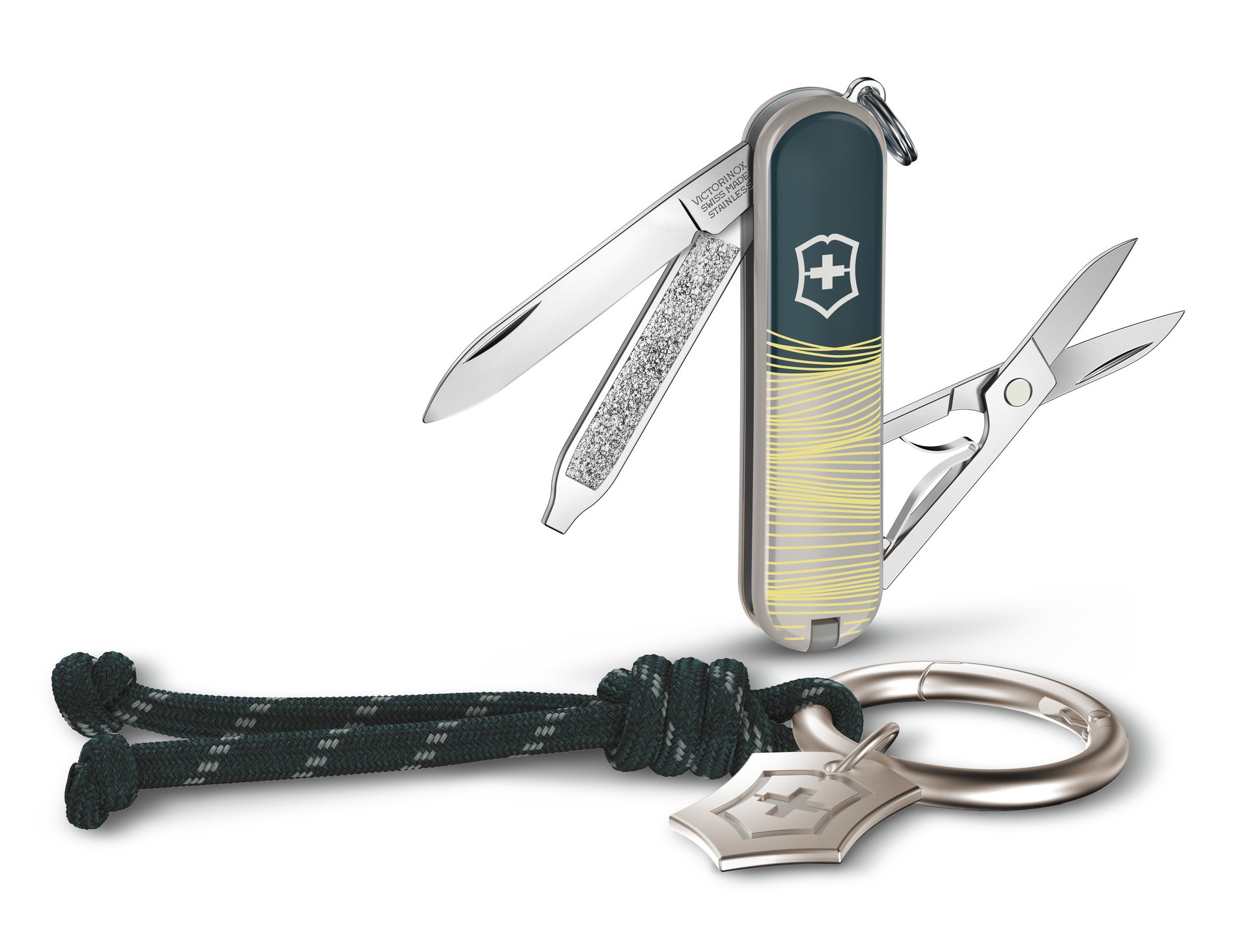 Malý kapesní nůž New York Style z kolekce Live to Explore spojuje křehkou ženskost s kompaktní funkčností a odráží městskou eleganci. Nůž je doplněn kroužkem na klíče ozdobeným stylovým uzlem s přívěškem ve tvaru loga s typickým švýcarským křížem, vše společně uloženo v elegantní dárkové krabičce. Nůž samotný je vybaven 7 praktickými funkcemi: