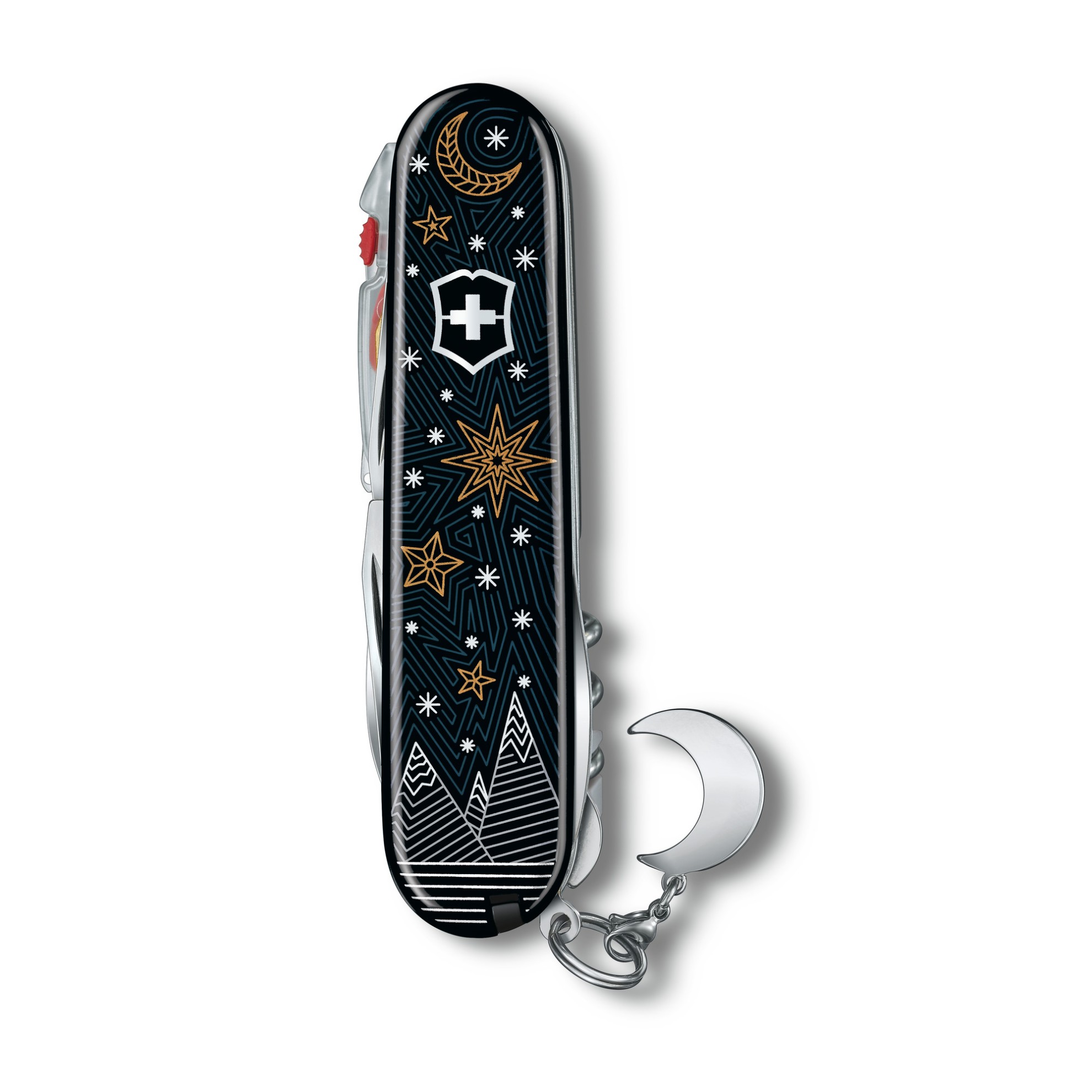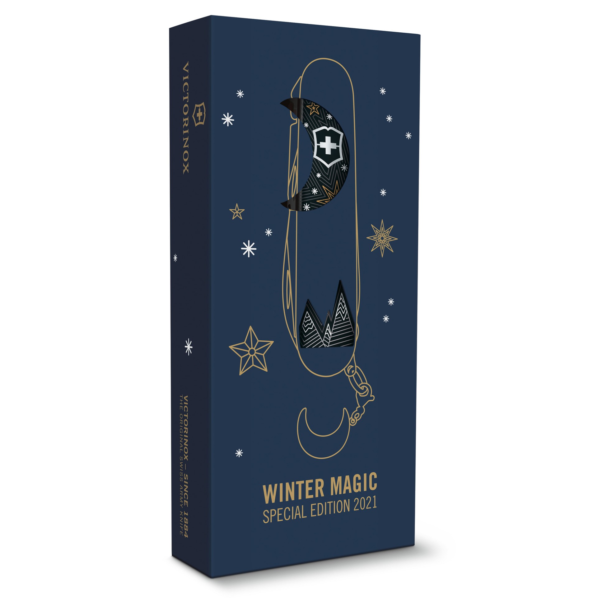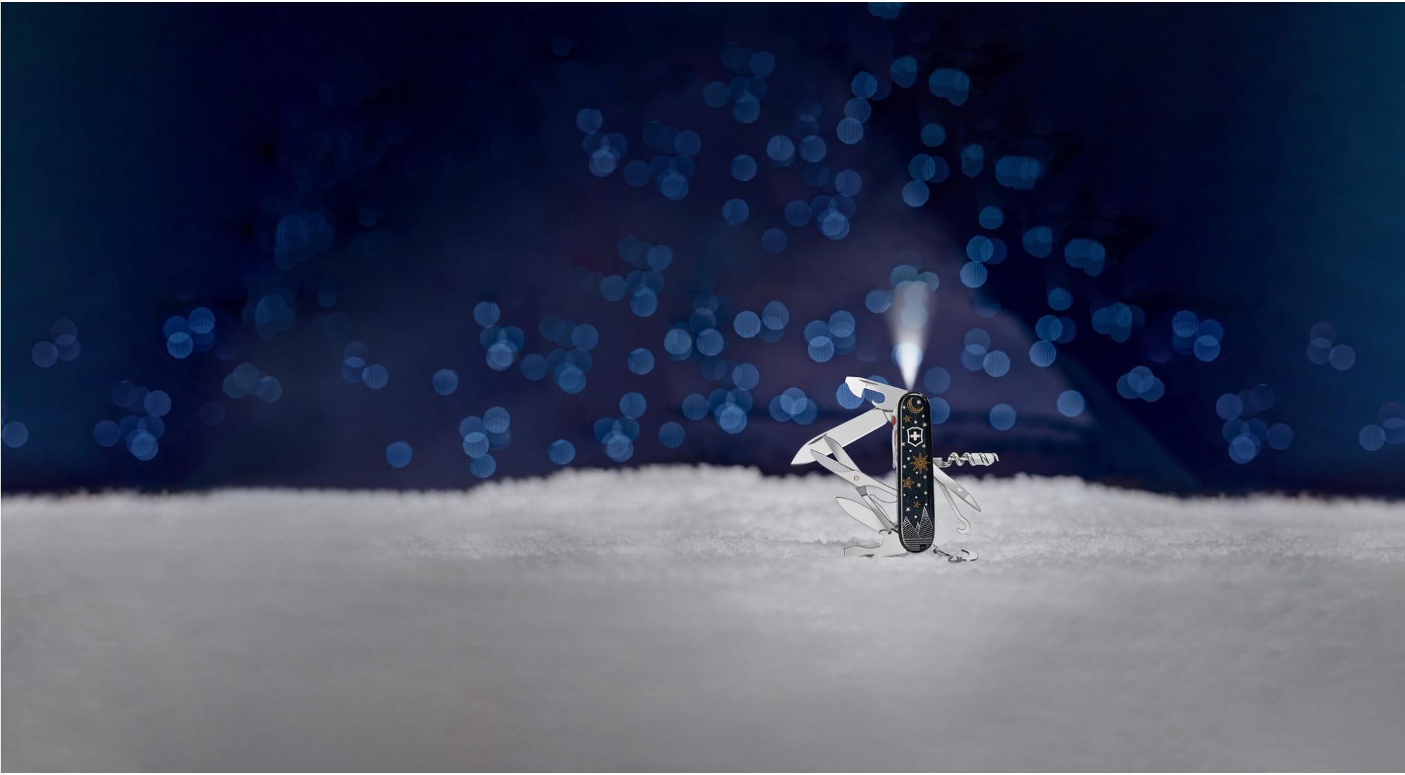 Kapesní nůž Victorinox o velikosti 91 milimetrů se zimním motivem na střence vybavený 17 funkcemi. Jedná se o limitovanou edici v počtu 10000 kusů.