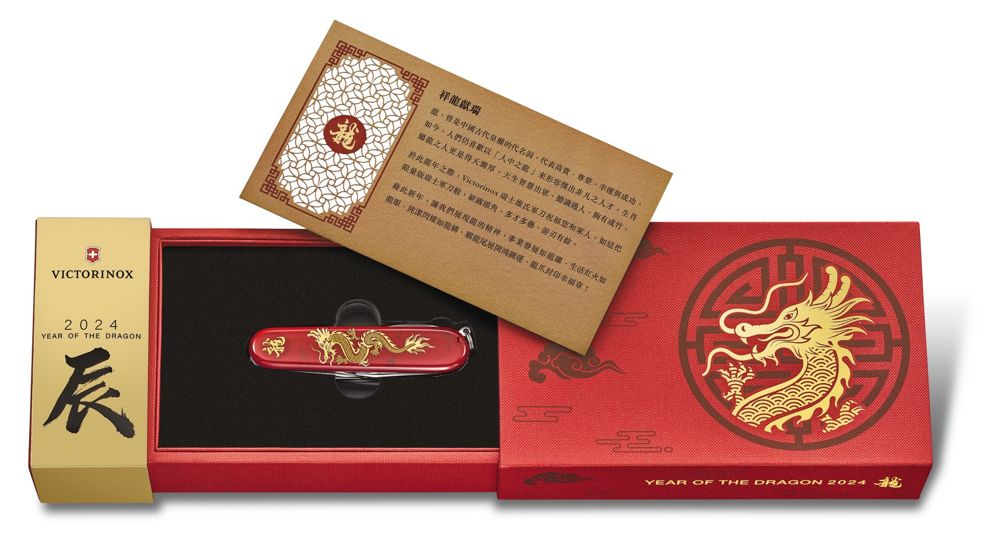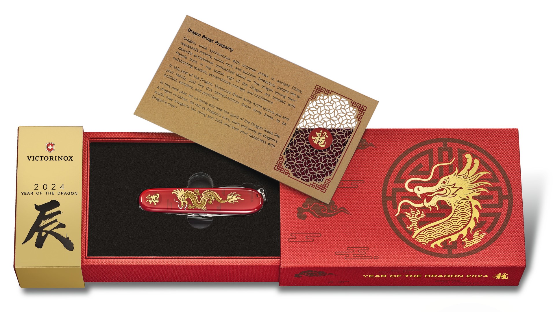 I pro rok 2024 přináší Victorinox sběratelský nůž Huntsman z limitované řady dekorované symboly znamení čínského zvěrokruhu. Tentokrát ve znamení draka. Seznamte se s dynamickým nožem, který je oslavou síly, ušlechtilosti a úspěchu. Každý nůž je individuálně očíslován, dodáván v luxusní dárkové krabičce s certifikátem, což z něj činí dokonalý dárek pro ty, kteří se narodili v čínském roce draka. Ostatní si jej zamilují pro úžasný design a dokonalé funkce, díky kterým se můžete postavit čelem a s dračím odhodláním jakémukoli problému. Jedná se o jedinečný sběratelský nůž s 16 funkcemi, který symbolizuje, stejně jako znamení draka, sílu a odvahu. Bylo vyrobeno pouze 8888 kusů pro celý svět.
