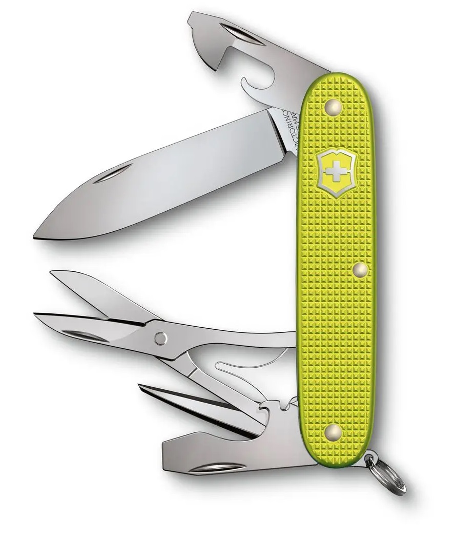 Kapesní nůž Victorinox je elegantním doplňkem, stejně tak i plnohodnotným nástrojem vybaveným 9 funkcemi. Hliníková střenka je vyražena a následně eloxována procesem Eloxal, který na nich nejen vytvoří ochrannou vrstvu, ale dodá jim i požadovanou barvu. Vzniklá vrstva oxidu poskytuje střenkám dodatečnou ochranu před poškozením či korozí a dodává noži, s vizuálně atraktivním designem, snadný úchop.