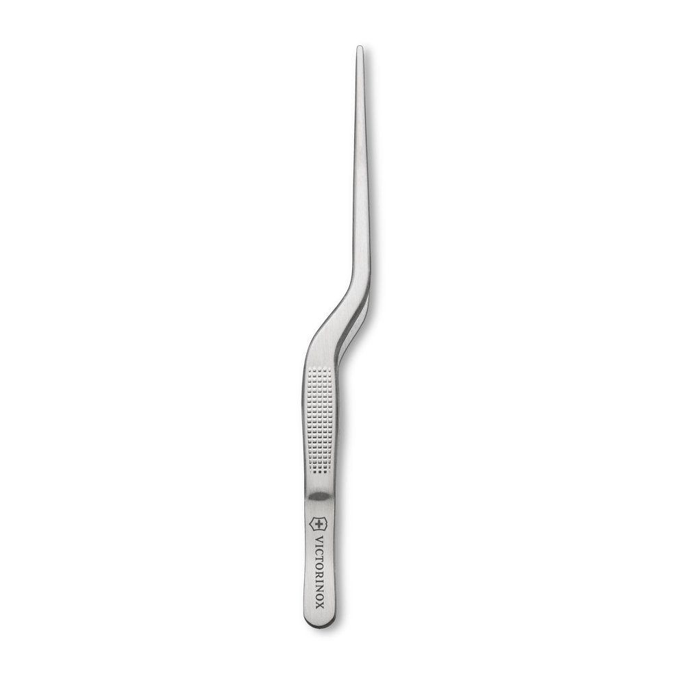 Ofsetová pinzeta vyrobená s ohledem na kuchaře. Díky protiskluzové rukojeti z nerezové oceli se jedná o přesný nástroj pro snadnou manipulaci, který umožní složité zdobení a úplnou kontrolu nad nejmenšími detaily během plátování a aranžování pokrmů. Pinzeta je vhodná do myčky nádobí.