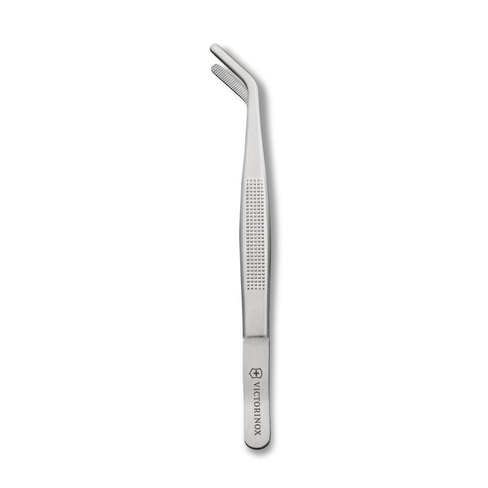 Pinzeta se zahnutými hroty vyrobená s ohledem na kuchaře. Díky protiskluzové rukojeti z nerezové oceli se jedná o přesný nástroj pro snadnou manipulaci, který umožní složité zdobení a úplnou kontrolu nad nejmenšími detaily během plátování a aranžování pokrmů. Pinzeta je vhodná do myčky nádobí.