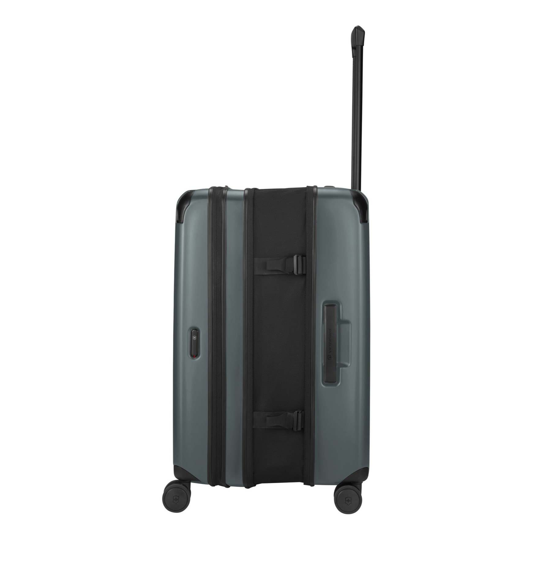 Odolné zavazadlo k odbavení v šedé barvě s kapacitou 81 litrů s expanzním systémem se zipem, který umožnuje rozšířit kapacitu zavazadla na 113 litrů. Kufr je vyroben z vysoce výkonného recyklovaného polykarbonátu SORPLAS™, vybaven stabilizační technologií Victorinox a recyklovanou antimikrobiální podšívkou SILVADUR™ pro bezchybný výkon a bezkonkurenční odolnost.