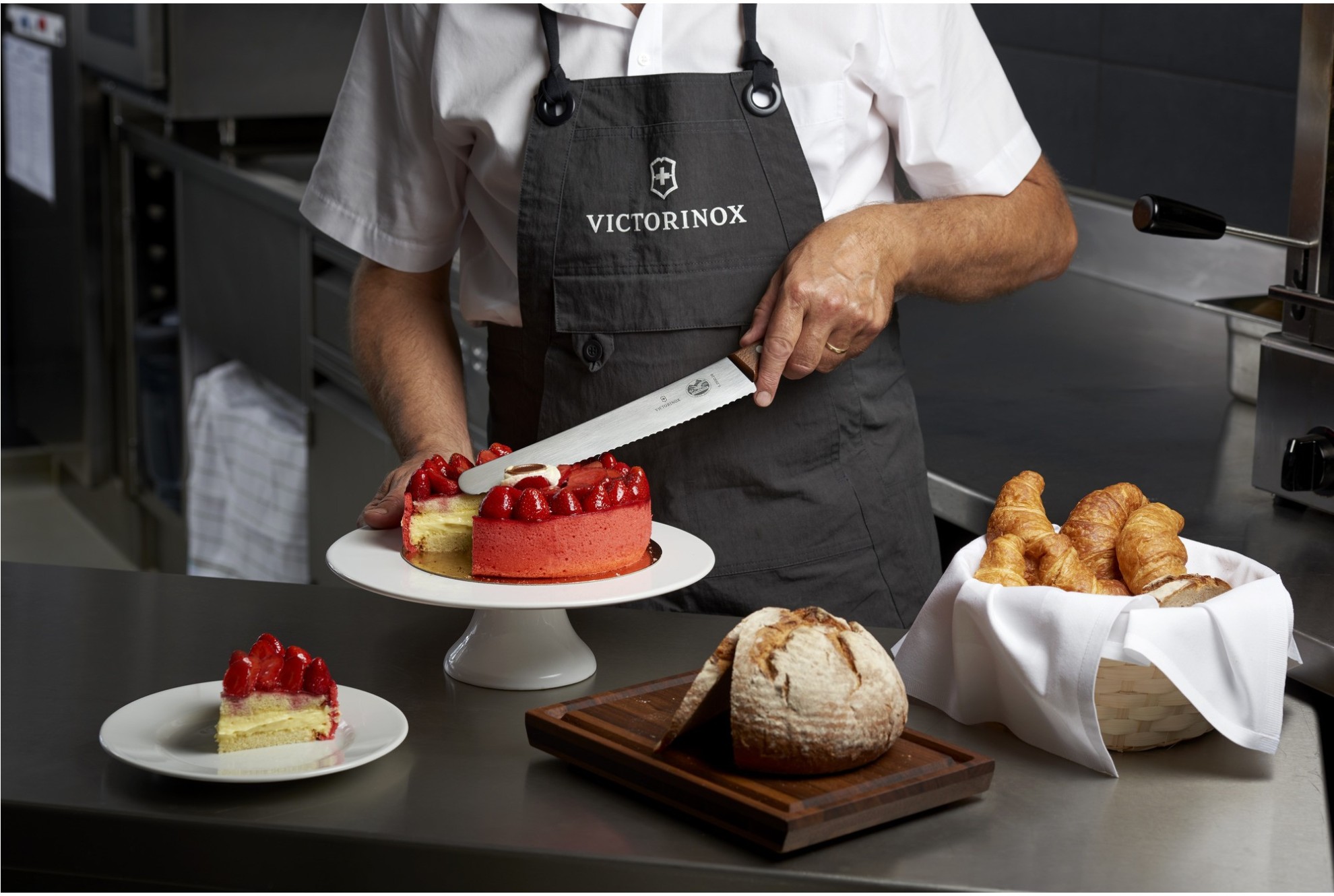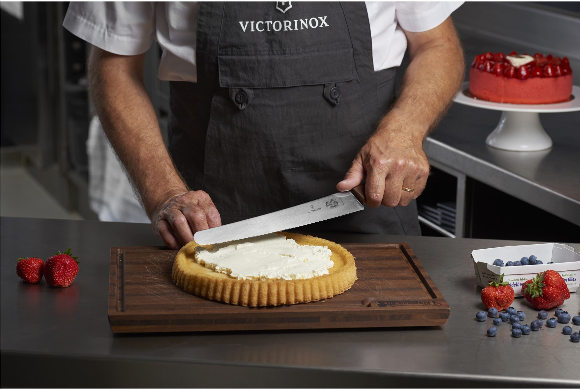 Nůž na pečivo a cukrovinky s vlnkovanou čepelí dlouhou 26 centrimetrů a ergonomicky tvarovanou rukojetí z palisandrového dřeva. Není vhodný do myčky na nádobí. Celková délka nože: 37,4 cm