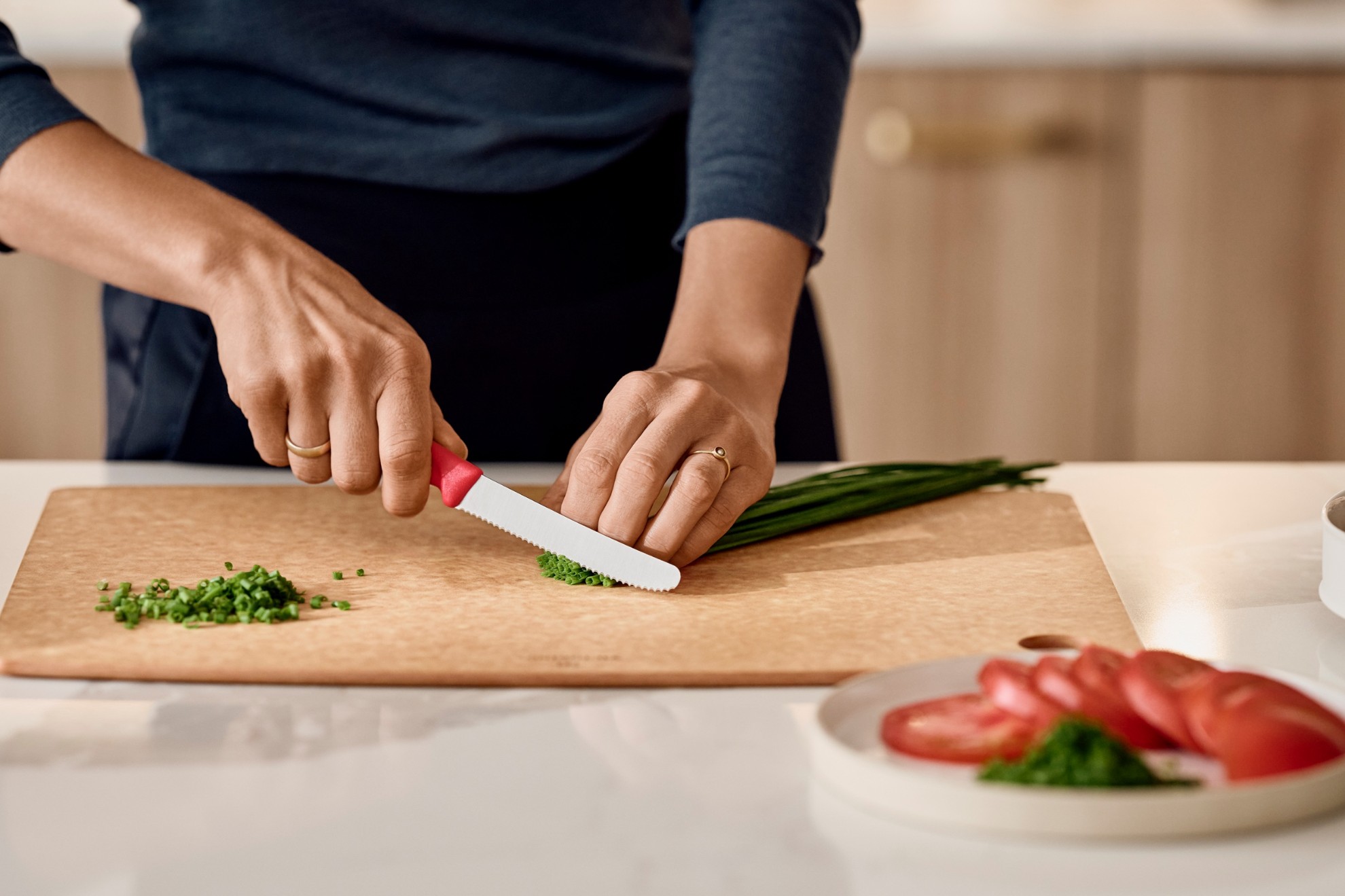Praktický kuchyňský nůž obzvlášť vhodný na krájení rajčat či ovoce a zeleniny s měkkou slupkou.