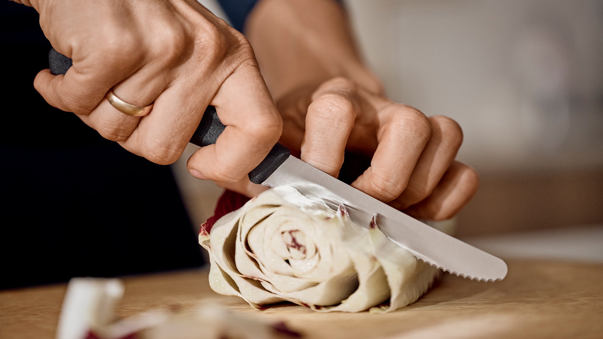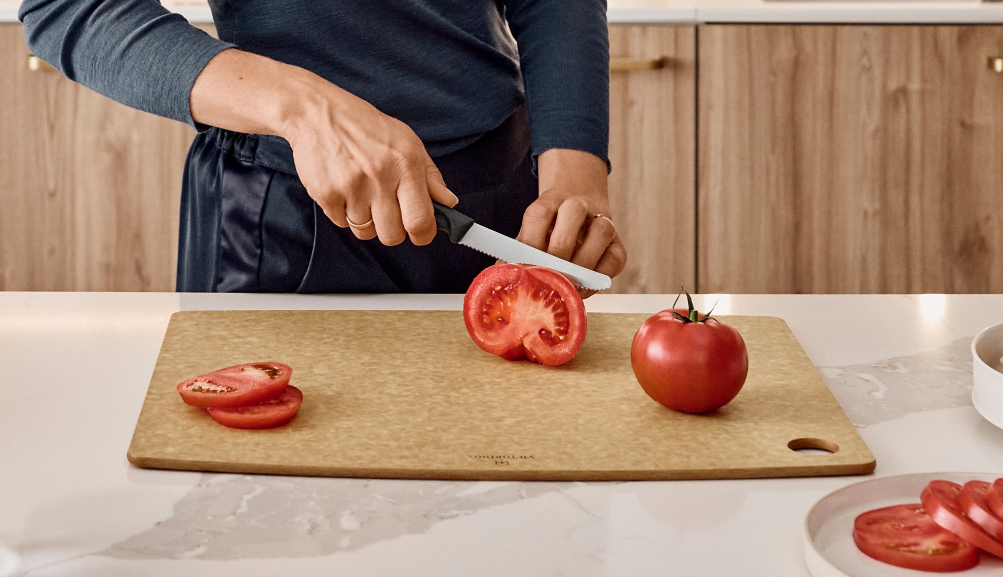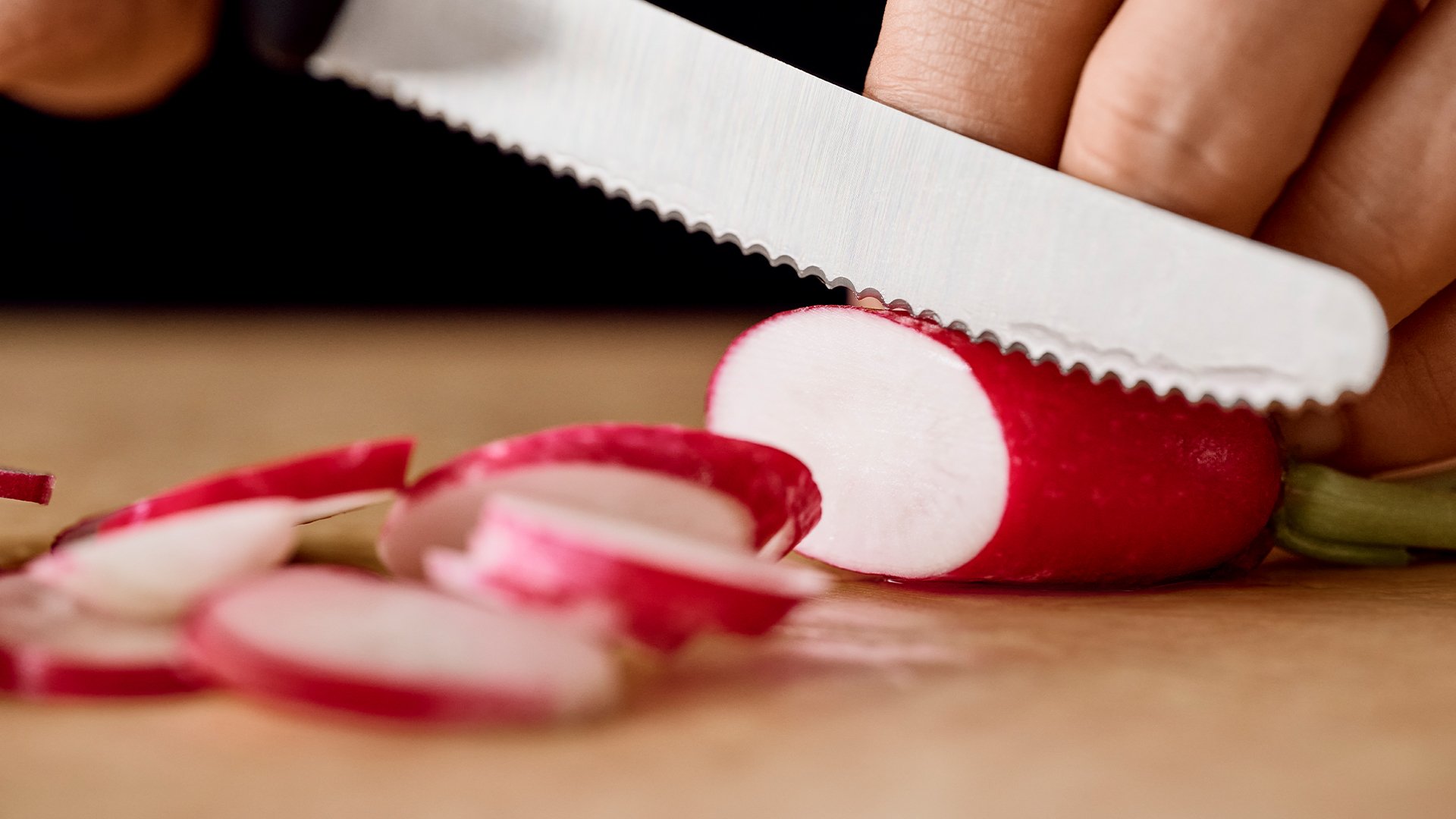 Praktický kuchyňský nůž obzvlášť vhodný na krájení rajčat či ovoce a zeleniny s měkkou slupkou.