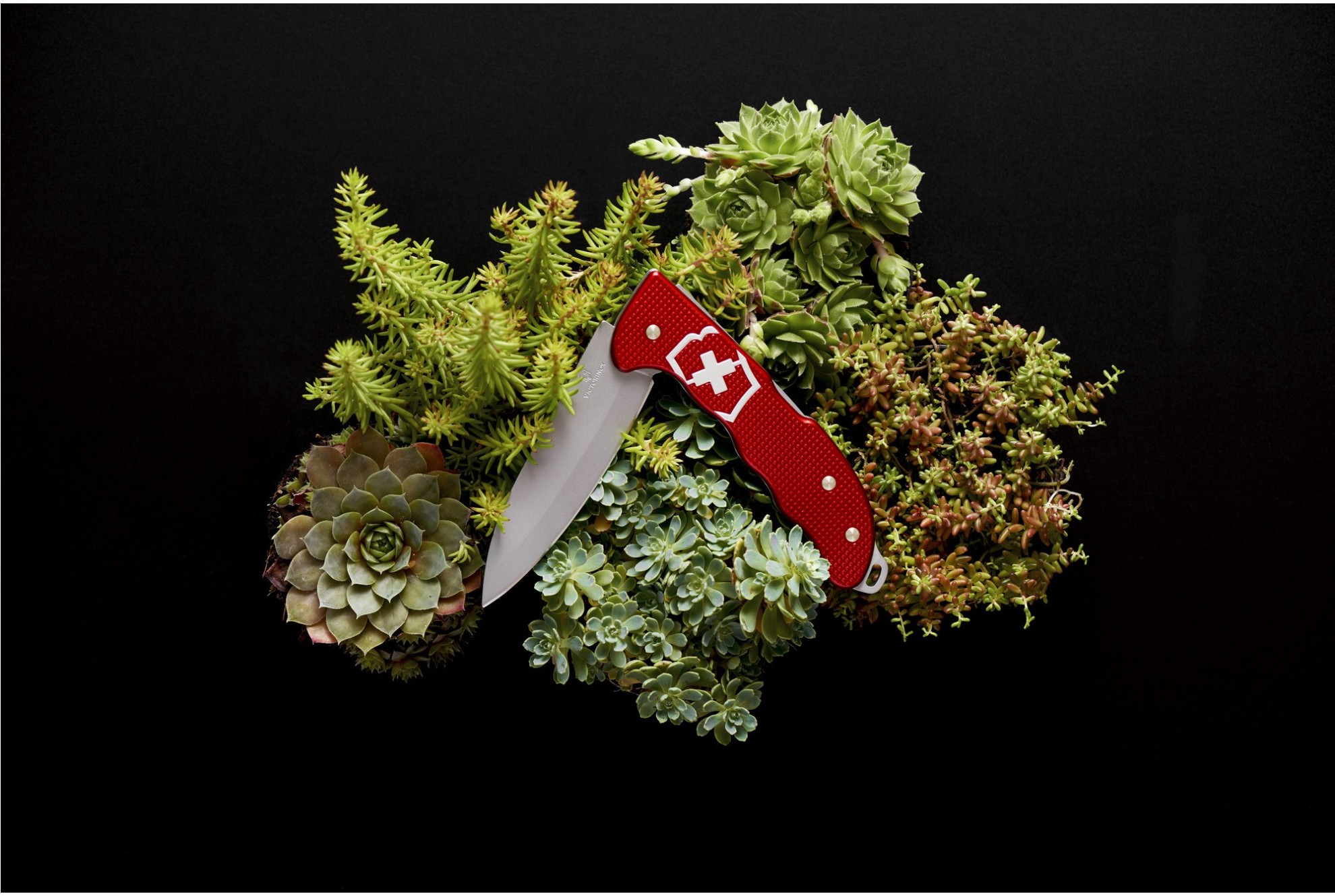 Kapesní nůž o velikosti 136 mm v červené barvě se 4 funkcemi. Velmi elegantní provedení střenek z materiálu Alox - v průběhu anodického procesu dochází k nánosu ochranné vrstvy na hliníkové střenky coby dodatečná ochrana proti poškození a korozi.