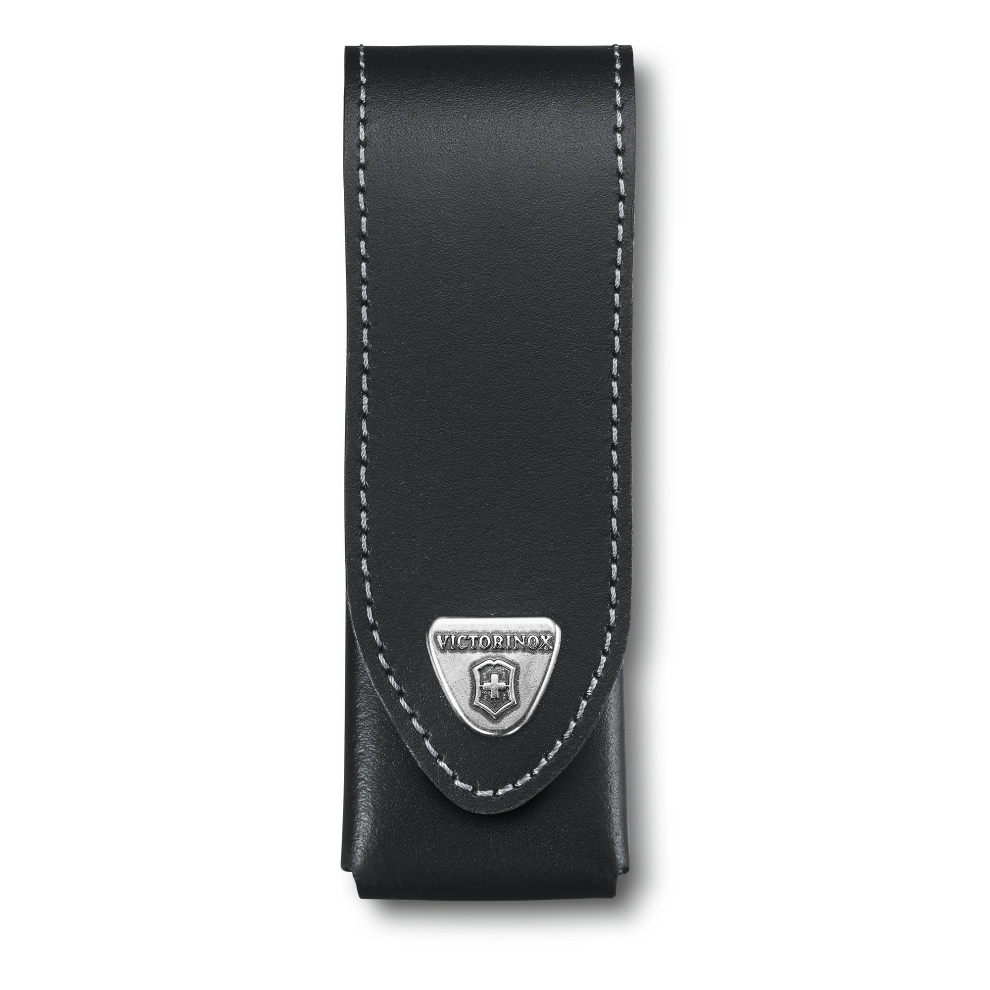 Černé kožené pouzdro na kapesní nože o velikosti 120 mm do tří vrstev želízek s provlékacím očkem na opasek a zapínáním na suchý zip.