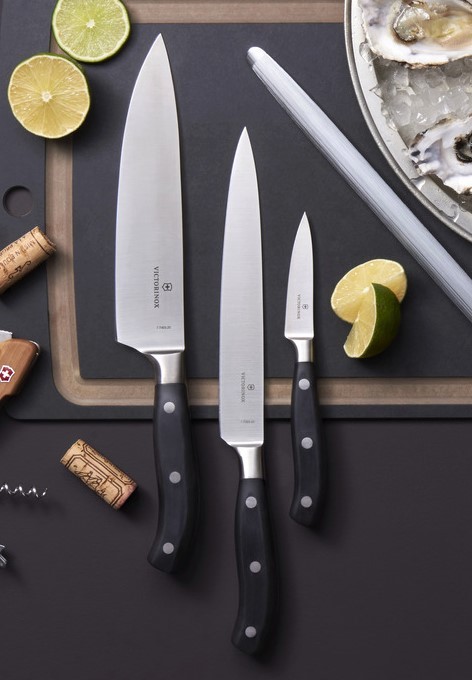 • nůž na zeleninu s délkou čepele 8 cm• dranžírovací nůž s čepelí dlouhou 20 cm• kuchařský nůž s čepelí dlouhou 20 cm