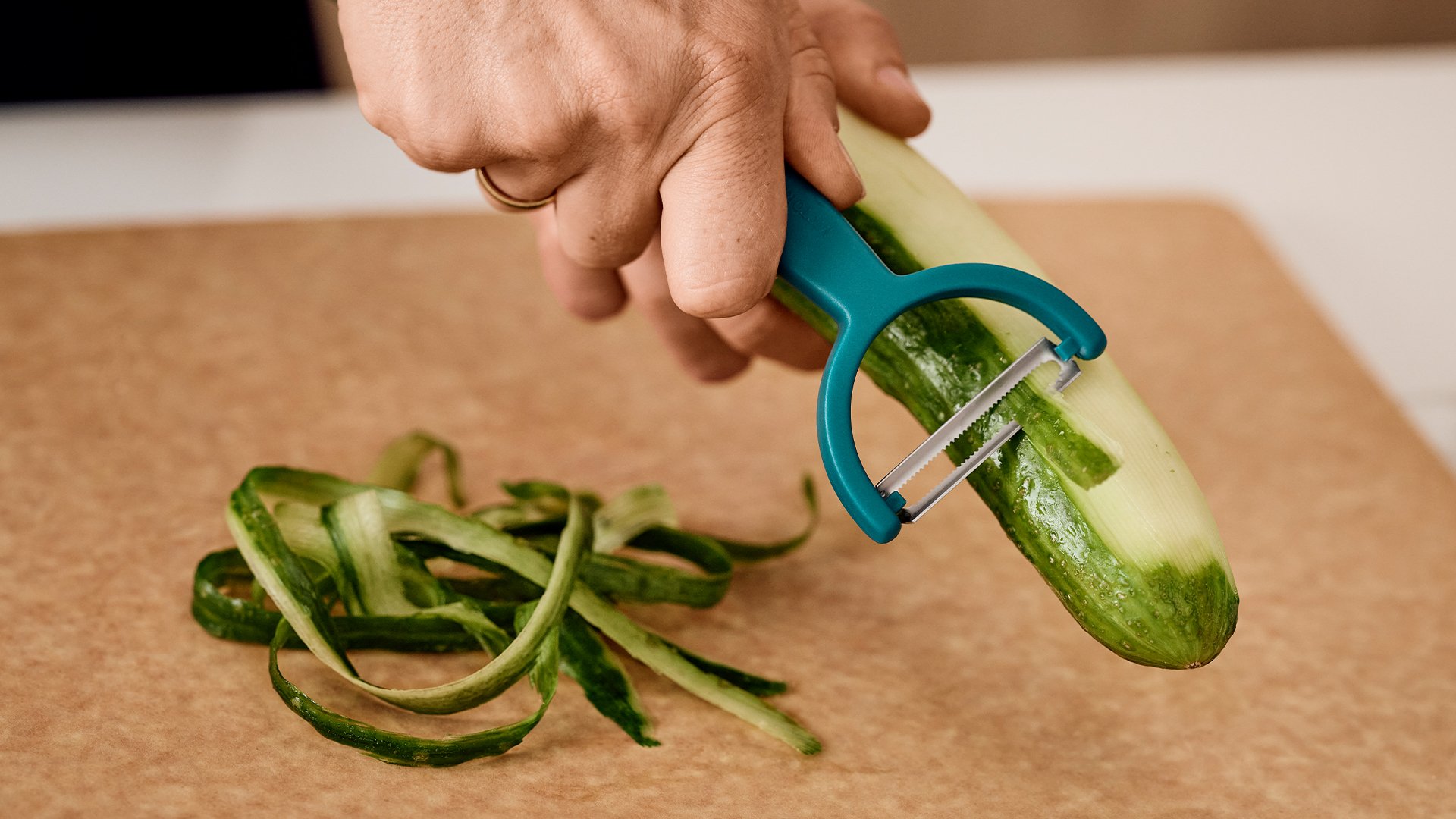 • univerzální kuchyňský nůž se zelenou rukojetí z polypropylenu a rovnou čepelí dlouhou 8 cm• škrabka ypso se zelenou rukojetí z polypropylenu a dvojitým nerezovým vroubkovaným ostřím