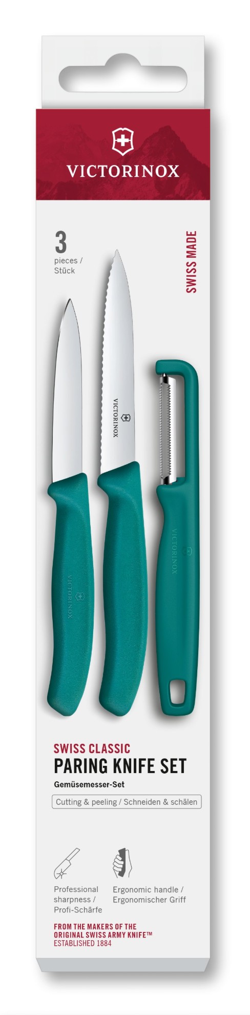 • univerzální kuchyňský nůž se zelenou rukojetí z polypropylenu a rovnou čepelí dlouhou 8 cm