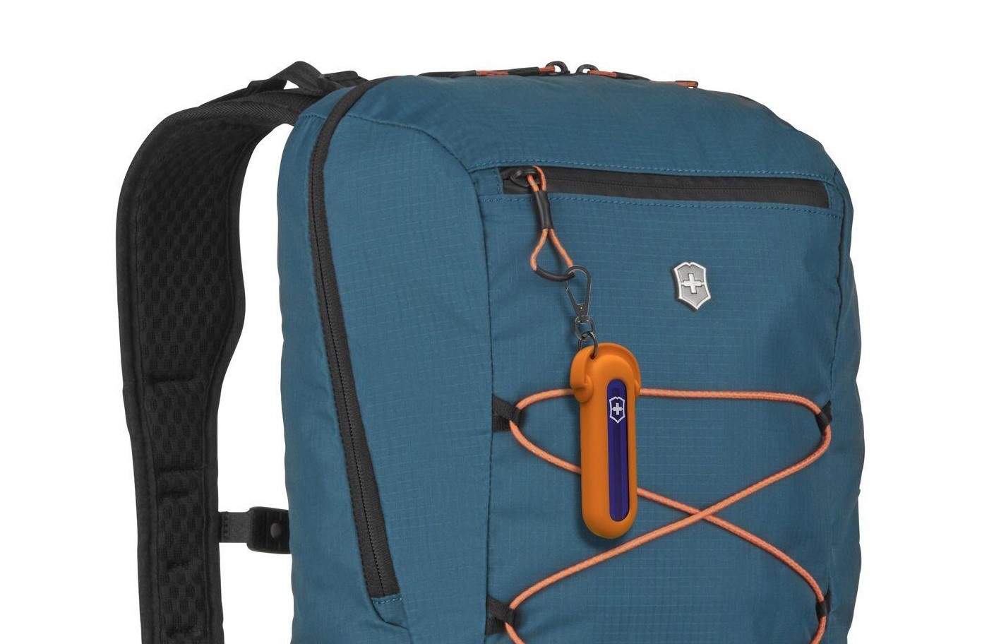 Oranžové pouzdro dlouhé 7 centimetrů ve tvaru sluchátek s karabinou na pověšení vhodné pro nože do velikosti 58 milimetrů. Pouzdro ze silikonu je měkké, lze jej nosit jako přívěšek na klíče nebo v tašce či batohu i s nožem, který tak bude v bezpečí.