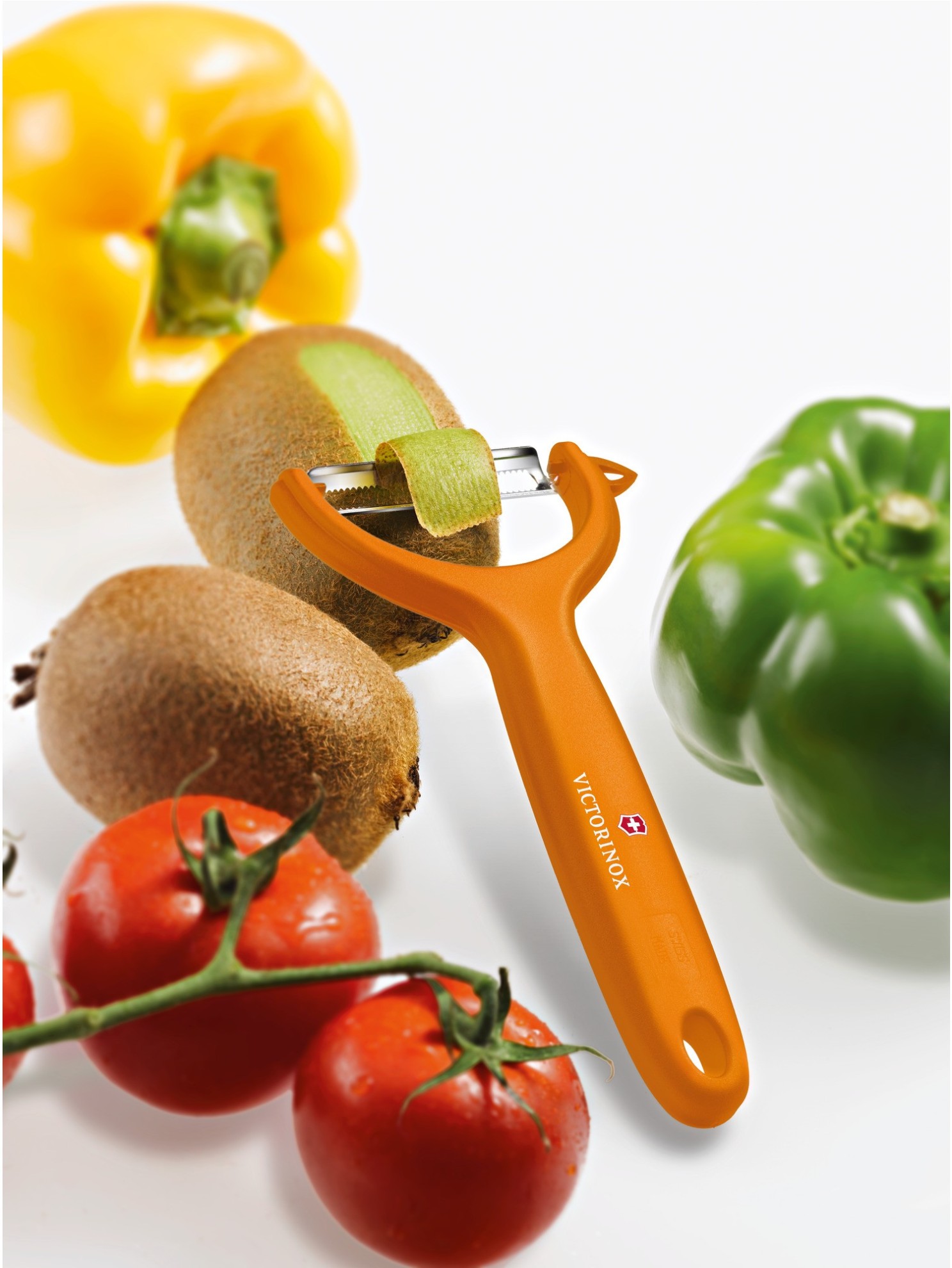 Škrabka Victorinox s jemnými ale ostrými zoubky je primárně určena na loupání rajčat a kiwi a poradí si i s tou nejtvrdší slupkou.
