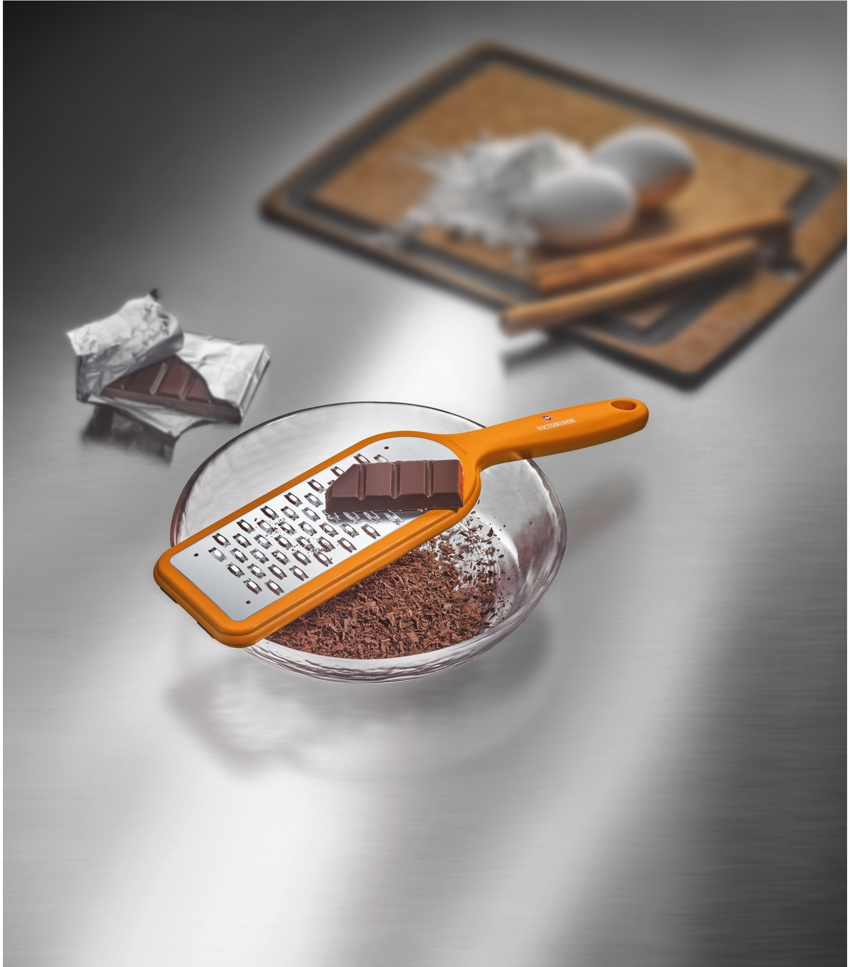 Ergonomicky tvarované struhadlo Victorinox se střední hrubostí vhodné na vytváření hoblinek čokolády, strouhání tvrdého sýra nebo ořechů. Každý břit je oboustranně broušený, takže lze strouhat oběma směry.