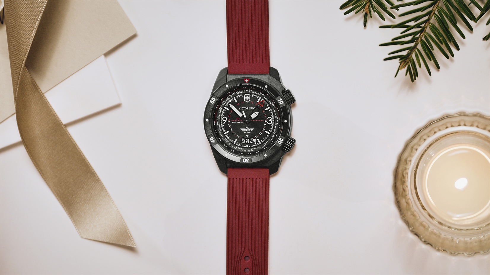 Victorinox Air Pro Automatic 242006 jsou pánské sportovní automatické hodinky na červeném kaučukovém řemínku s překlápěcí sponou. Pouzdro z nerezové oceli s povrchovou PVD úpravou černé barvy má průměr 43 milimetrů, průhledné dýnko, otočnou lunetu s minutovou stupnicí, šroubovací korunku a GMT korunku. Černý číselník s ukazatelem data a 24hodinovým formátem zobrazení času je chráněn odolným safírovým sklem s antireflexní vrstvou. Ručičky a indexy pokrývá luminiscenční nátěr Super-LumiNova®, který po nasvícení garantuje perfektní čitelnost za zhoršených světelných podmínek. Pohon hodinek zajišťuje švýcarský mechanický strojek Sellita SW330-2 s automatickým nátahem a rezervou chodu 56 hodin. S vodotěsností 20 ATM jsou hodinky vhodné pro hlubinné potápění.
