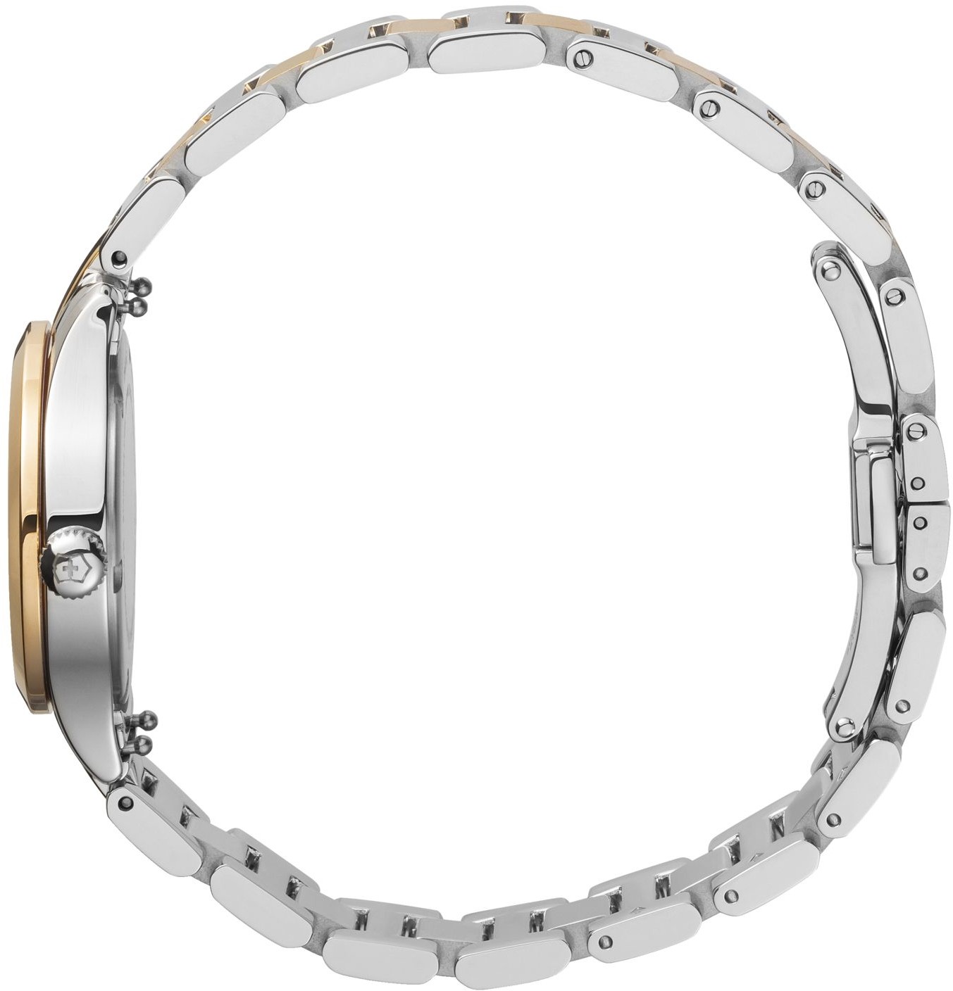 Victorinox Alliance XS 241842 jsou dámské klasické bateriové hodinky na ocelovém bicolor náramku s motýlkovou sponou. Některé články náramku a luneta disponují povrchovou PVD úpravou zlaté barvy. Pouzdro z nerezové oceli má průměr 28 milimetrů. Stříbrný číselník s efektem slunečního brusu je chráněn odolným safírovým sklem s antireflexní vrstvou. Ručičky a body u indexů pokrývá luminiscenční nátěr SuperLuminova, který po nasvícení garantuje perfektní čitelnost za zhoršených světelných podmínek. Pohon hodinek zajišťuje švýcarský quartzový strojek. S vodotěsností 10 ATM jsou hodinky vhodné pro plavání a šnorchlování.