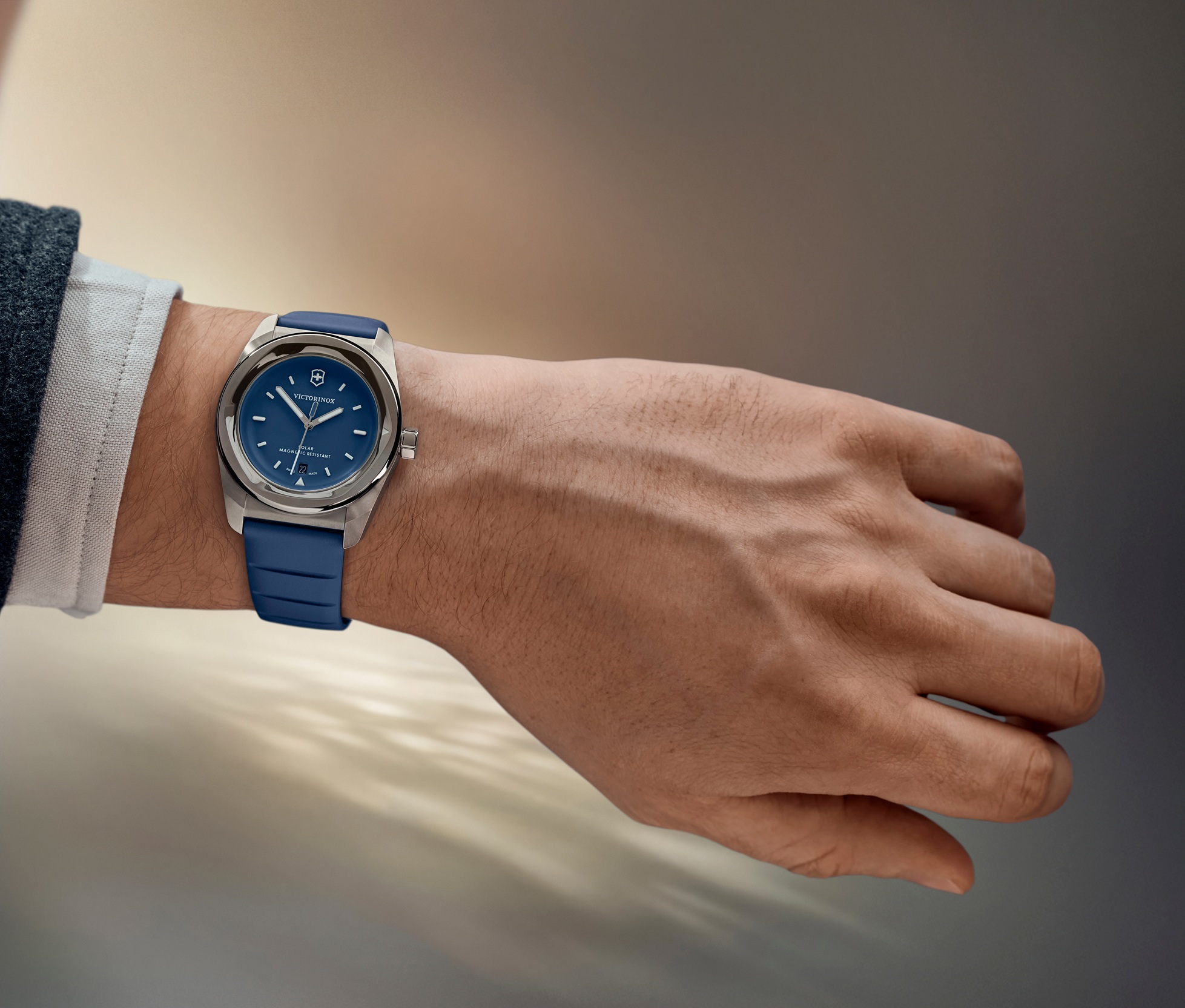Victorinox Concept One 242053 jsou pánské sportovní solární hodinky na modrém kaučukovém řemínku s překlápěcí sponou. Ocelové pouzdro má průměr 39 milimetrů. Modrý číselník s ukazatelem data na šesté hodině je chráněn odolným safírovým sklem s antireflexní vrstvou. Ručičky a indexy pokrývá luminiscenční nátěr SuperLuminova, který po nasvícení garantuje perfektní čitelnost za zhoršených světelných podmínek. Pohon hodinek zajišťuje strojek Ronda 215 se solárním napájením. S vodotěsností 10 ATM jsou hodinky vhodné pro plavání a šnorchlování.