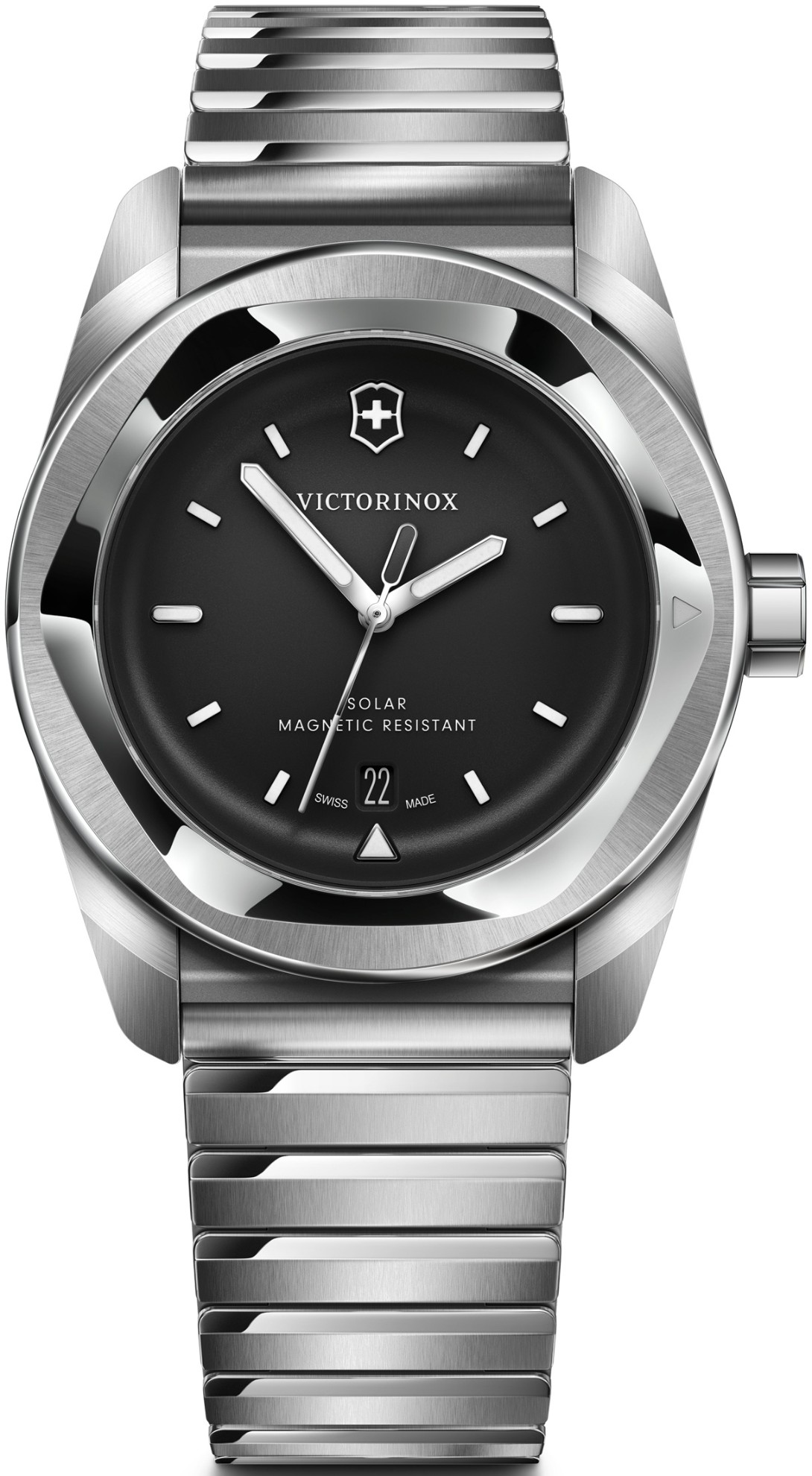 Victorinox Concept One 242055 jsou pánské klasické solární hodinky na ocelovém náramku s motýlkovou sponou. Ocelové pouzdro má průměr 39 milimetrů. Černý číselník s ukazatelem data na šesté hodině je chráněn odolným safírovým sklem s antireflexní vrstvou. Ručičky a indexy pokrývá luminiscenční nátěr SuperLuminova, který po nasvícení garantuje perfektní čitelnost za zhoršených světelných podmínek. Pohon hodinek zajišťuje strojek Ronda 215 se solárním napájením. S vodotěsností 10 ATM jsou hodinky vhodné pro plavání a šnorchlování.