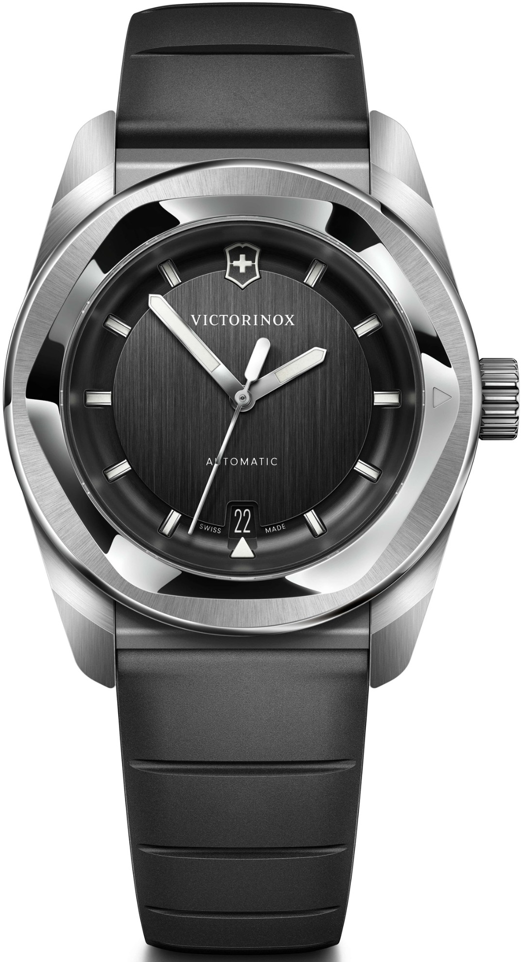 Victorinox Concept One 242057 jsou pánské sportovní automatické hodinky na černém kaučukovém řemínku s překlápěcí sponou. Ocelové pouzdro má průměr 39 milimetrů a průhledné dýnko. Černý číselník s vertikální texturou a ukazatelem data je chráněn odolným safírovým sklem s antireflexní vrstvou. Ručičky a indexy pokrývá luminiscenční nátěr SuperLuminova, který po nasvícení garantuje perfektní čitelnost za zhoršených světelných podmínek. Pohon hodinek zajišťuje mechanický strojek La Joux-Perret G100 s automatickým nátahem a rezervou chodu 68 hodin. S vodotěsností 10 ATM jsou hodinky vhodné pro plavání a šnorchlování.