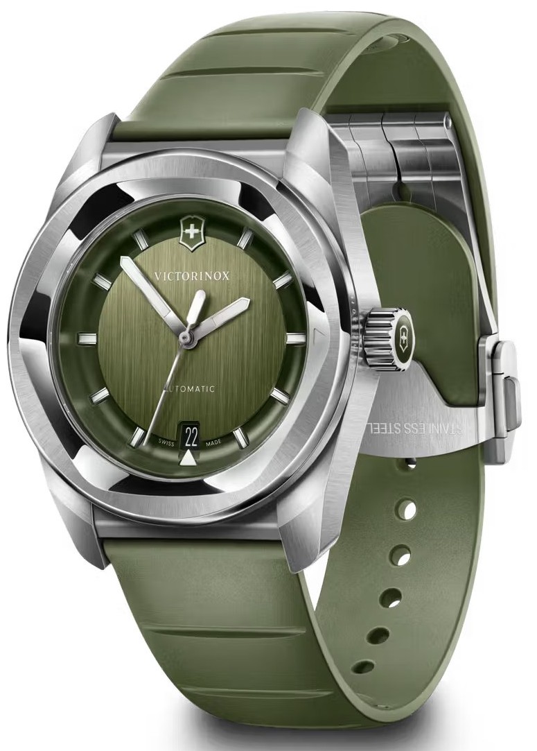 Victorinox Concept One 242058 jsou pánské sportovní automatické hodinky na zeleném kaučukovém řemínku s překlápěcí sponou. Ocelové pouzdro má průměr 39 milimetrů a průhledné dýnko. Zelený číselník s vertikální texturou a ukazatelem data je chráněn odolným safírovým sklem s antireflexní vrstvou. Ručičky a indexy pokrývá luminiscenční nátěr SuperLuminova, který po nasvícení garantuje perfektní čitelnost za zhoršených světelných podmínek. Pohon hodinek zajišťuje mechanický strojek La Joux-Perret G100 s automatickým nátahem a rezervou chodu 68 hodin. S vodotěsností 10 ATM jsou hodinky vhodné pro plavání a šnorchlování.