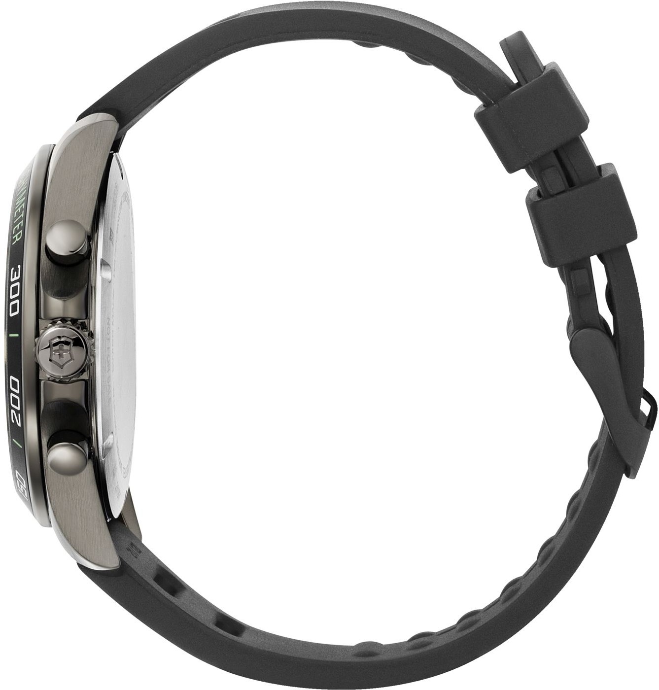 Victorinox FieldForce Chrono 241891 jsou pánské sportovní bateriové hodinky na černém kaučukovém řemínku s trnovou sponou. Pouzdro z nerezové oceli s povrchovou PVD úpravou v tmavě šedé barvě má průměr 42 milimetrů, černou lunetu s tachymetrickou stupnicí a šroubovací korunku. Šedo-černý číselník se stopkami a ukazatelem data na šesté hodině je chráněn odolným safírovým sklem s antireflexní vrstvou. Ručičky a indexy pokrývá luminiscenční nátěr, který po nasvícení garantuje perfektní čitelnost za zhoršených světelných podmínek. Pohon hodinek zajišťuje quartzový strojek Ronda 5030.D. S vodotěsností 10 ATM jsou hodinky vhodné pro plavání a šnorchlování.