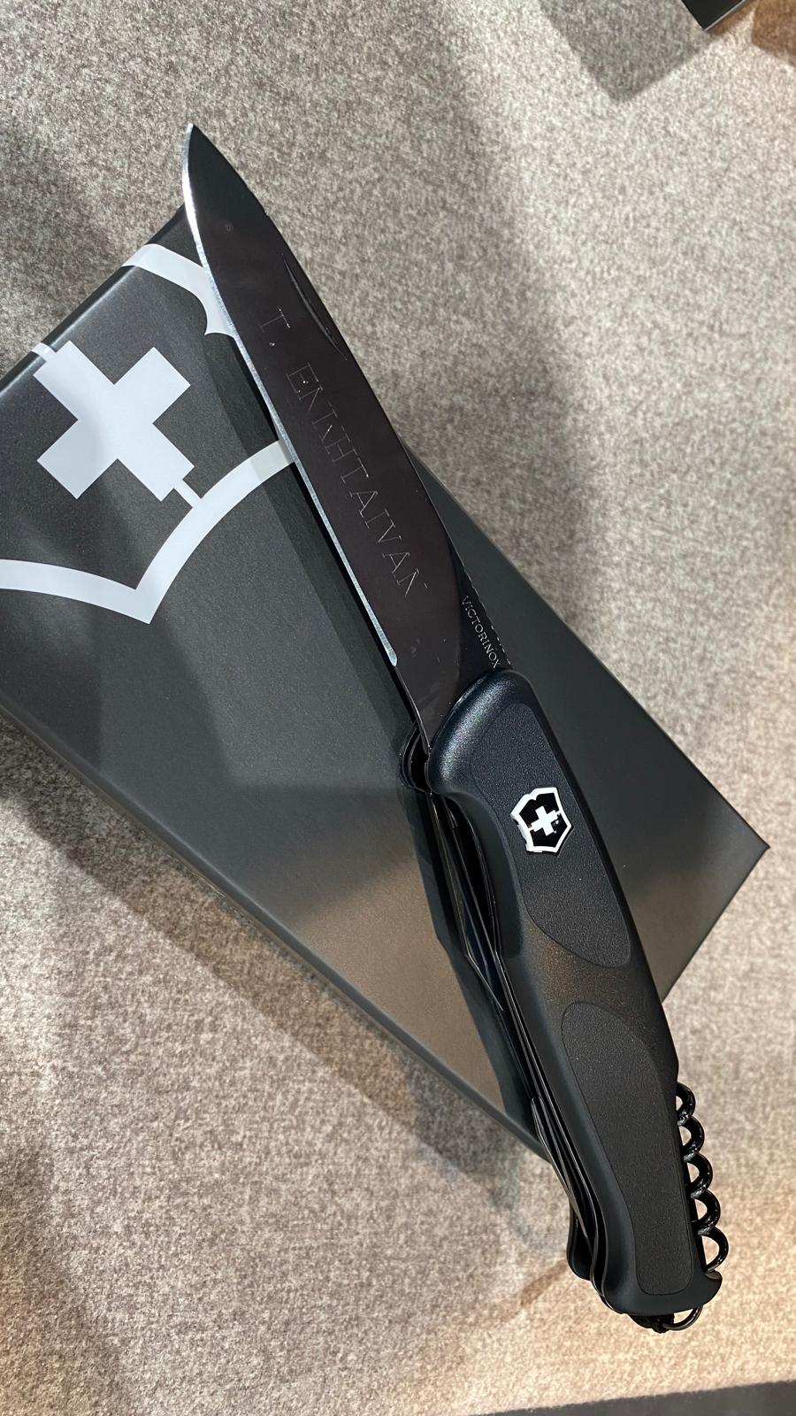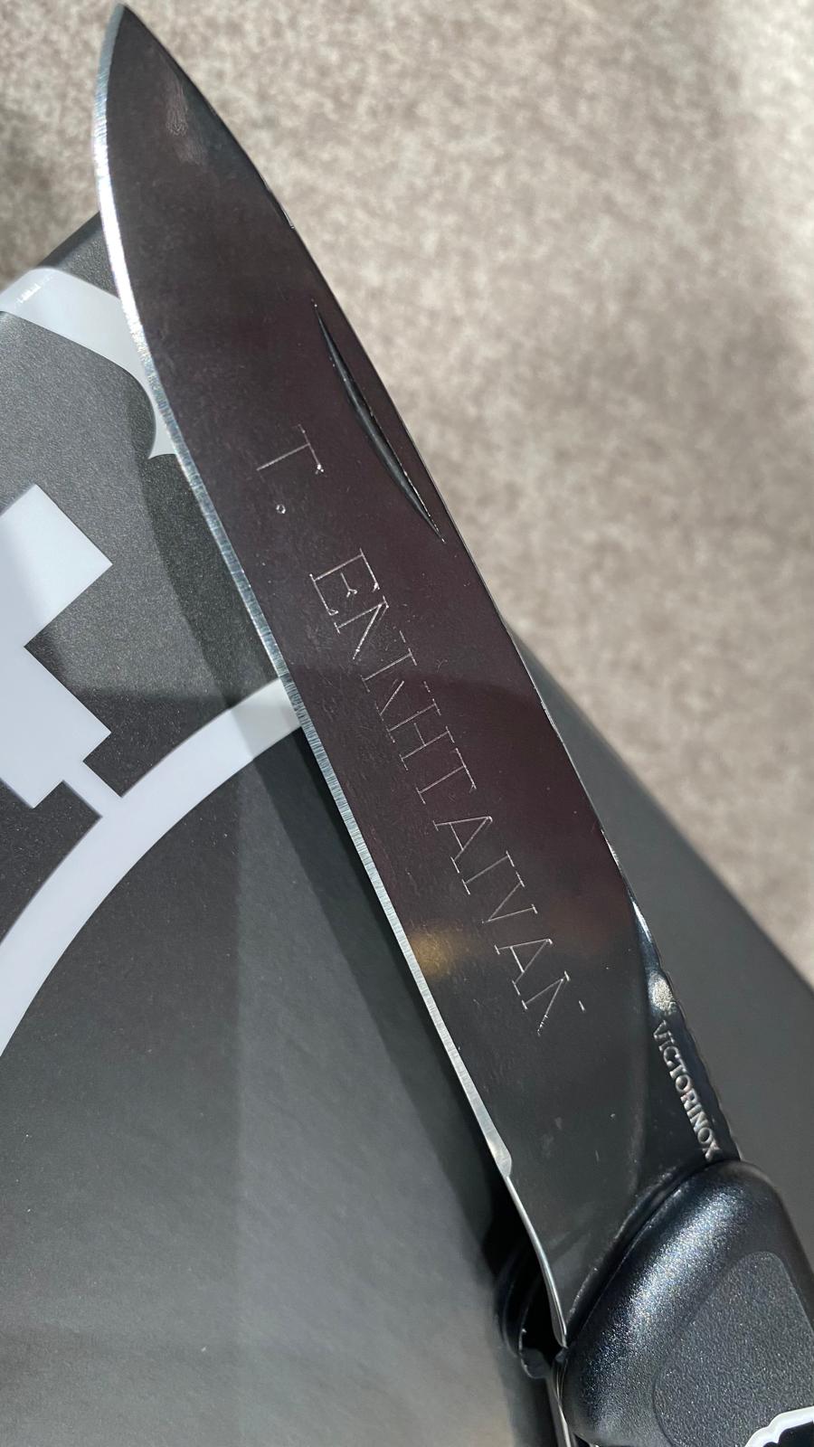Švýcarský nůž je vždycky dobrý dárek, ale nůž personalizovaný gravírováním je ten nejlepší dárek! Na nůž vám na počkání vygravírujeme jméno, věnování, připomínku životní události nebo třeba oblíbený citát. Limitováni jsme jen množstvím prostoru, které vámi vybraný nůž nabízí. Požadovanou gravuru můžeme umístit na přední stranu čepele a na obě střenky nože. Negravírujeme na dřevěné střenky a ani na limitované edice nožů. U kuchyňských nožů gravírujeme pouze na čepel.