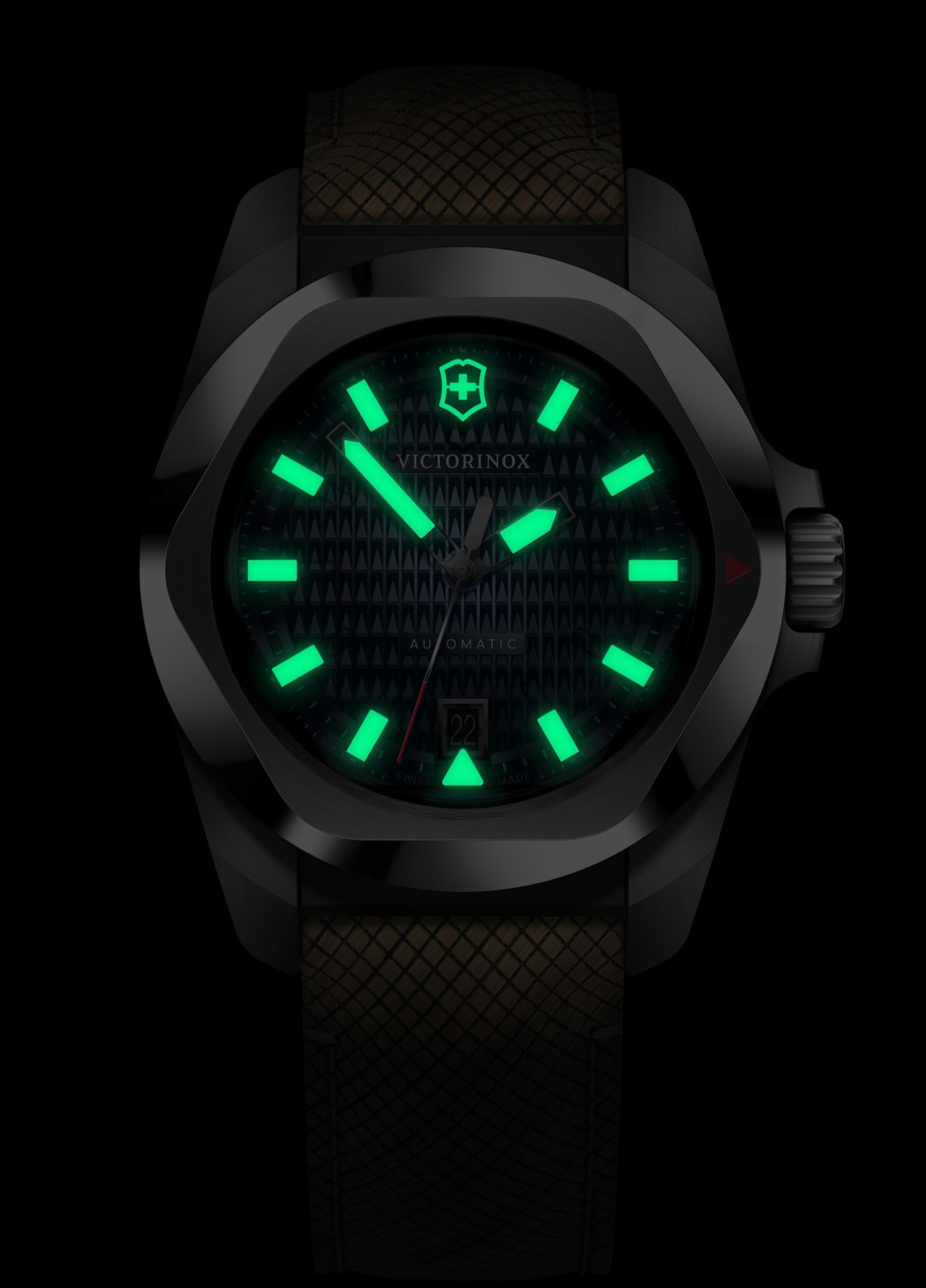 Victorinox I.N.O.X. 242018.1 jsou pánské sportovní automatické hodinky na hnědém řemínku v kombinaci kůže a dřeva s překlápěcí sponou. Pouzdro z nerezové oceli má průměr 41 milimetrů, průhledné dýnko a šroubovací korunku. Modrý texturovaný číselník s ukazatelem data na šesté hodině je chráněn odolným safírovým sklem s antireflexní vrstvou. Ručičky a indexy pokrývá luminiscenční nátěr Super-LumiNova®, který po nasvícení garantuje perfektní čitelnost za zhoršených světelných podmínek. Pohon hodinek zajišťuje mechanický strojek Sellita SW200-1 s automatickým nátahem a rezervou chodu 38 hodin. S vodotěsností 20 ATM jsou hodinky vhodné pro hlubinné potápění. Součástí balení je náhradní kaučukový řemínek modré barvy.