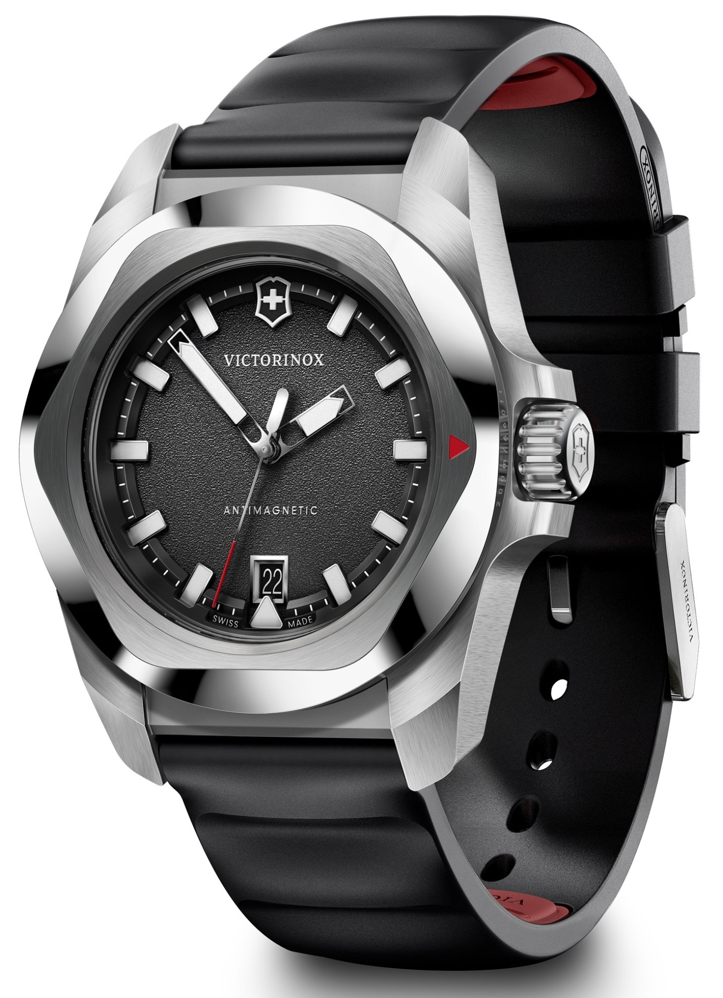 Victorinox I.N.O.X. 242028 jsou pánské sportovní bateriové hodinky na černém kaučukovém řemínku s trnovou sponou. Pouzdro z nerezové oceli má průměr 41 milimetrů a šroubovací korunku. Černý texturovaný číselník s ukazatelem data na šesté hodině je chráněn odolným safírovým sklem s antireflexní vrstvou. Ručičky a indexy pokrývá luminiscenční nátěr Super-LumiNova®, který po nasvícení garantuje perfektní čitelnost za zhoršených světelných podmínek. Pohon hodinek zajišťuje švýcarský quartzový strojek Ronda 715. S vodotěsností 20 ATM jsou hodinky vhodné pro hlubinné potápění.