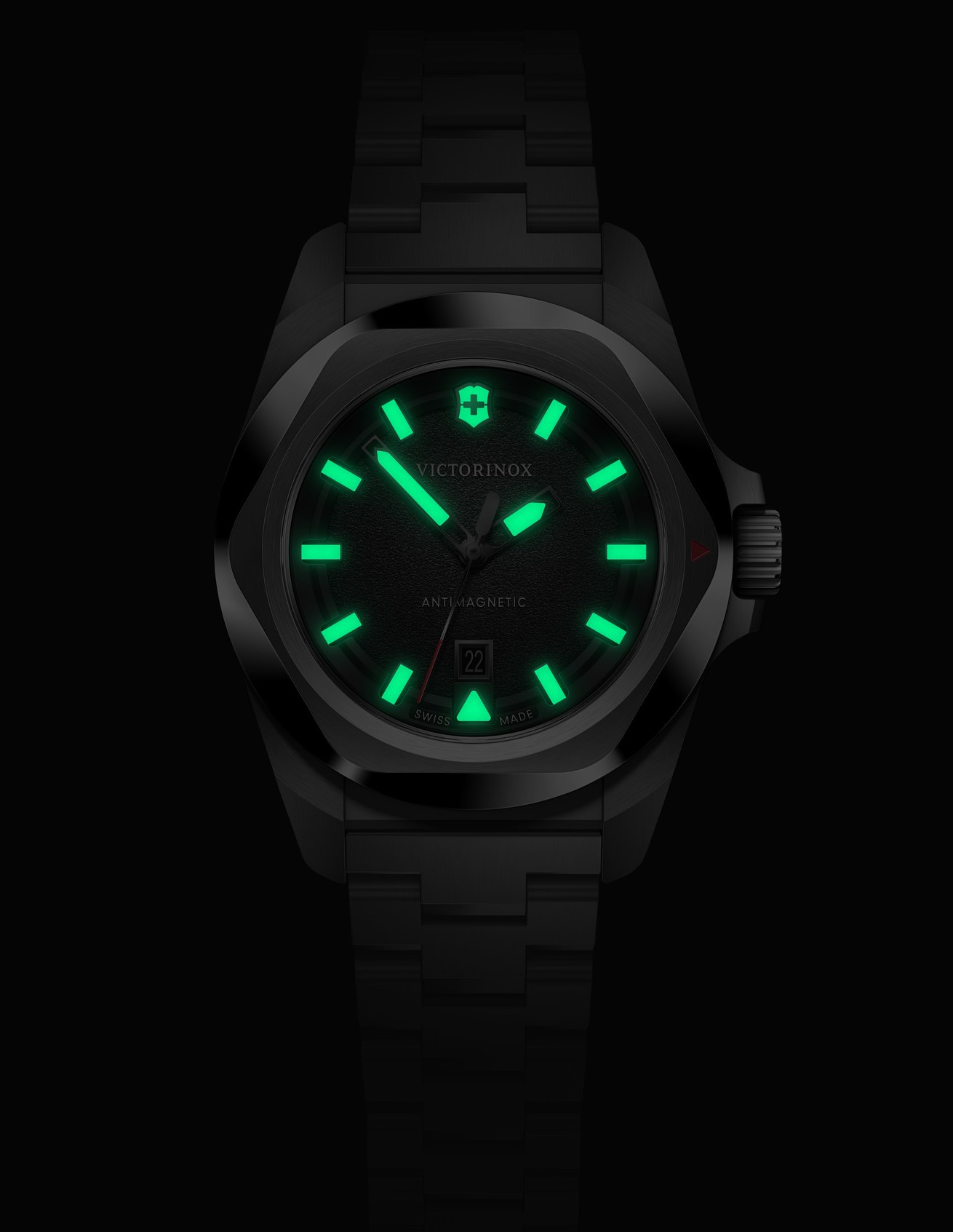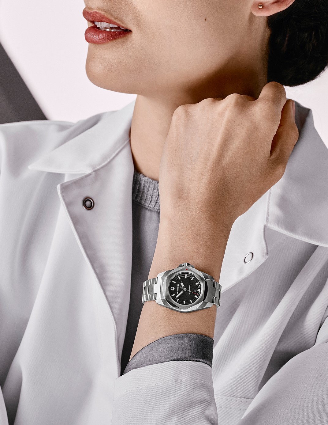 Victorinox I.N.O.X. 242036 jsou dámské klasické bateriové hodinky na ocelovém náramku s motýlkovou sponou. Pouzdro z nerezové oceli má průměr 32 milimetrů. Černý texturovaný číselník s ukazatelem data na šesté hodině je chráněn odolným safírovým sklem s antireflexní vrstvou. Ručičky a indexy pokrývá luminiscenční nátěr Super-LumiNova®, který po nasvícení garantuje perfektní čitelnost za zhoršených světelných podmínek. Pohon hodinek zajišťuje švýcarský quartzový strojek Ronda 775. S vodotěsností 10 ATM jsou hodinky vhodné pro plavání a šnorchlování.