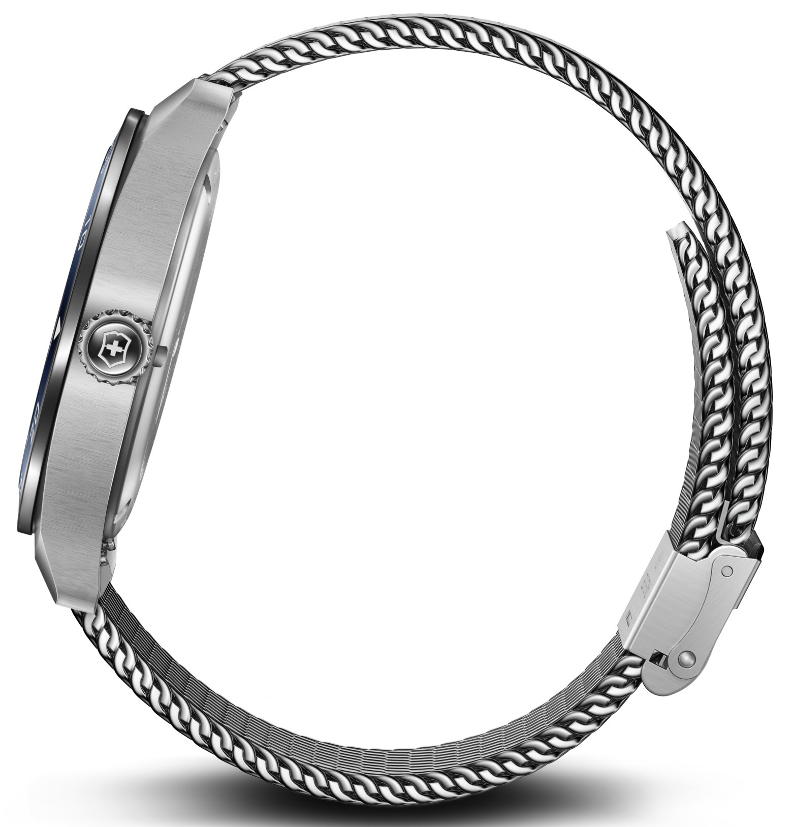 Victorinox Swiss Army 242042 jsou pánské elegantní bateriové hodinky na ocelovém milánském tahu s posuvnou sponou. Pouzdro z nerezové oceli má průměr 42 milimetrů a modrou lunetu s minutovou stupnicí. Modrý texturovaný číselník s ukazatelem data a dne v týdnu je chráněn odolným safírovým sklem. Ručičky a indexy pokrývá luminiscenční nátěr SuperLuminova®, který po nasvícení garantuje perfektní čitelnost za zhoršených světelných podmínek. Pohon hodinek zajišťuje quartzový strojek Ronda 517. S vodotěsností 10 ATM jsou hodinky vhodné pro plavání a šnorchlování.