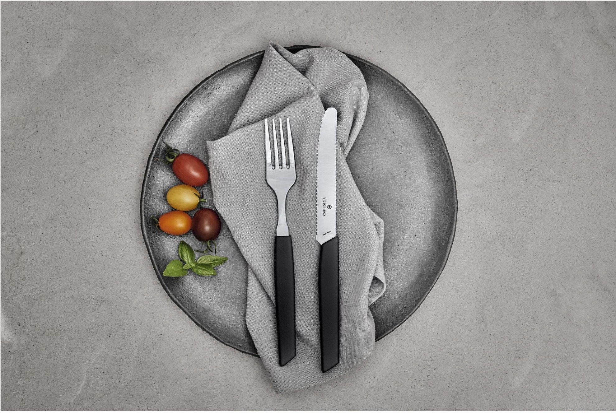 Vidlička z řady Swiss Modern je nedílnou součástí každodenního prostřeného stolu. Rukojeť v moderním designu ze syntetického materiálu je lehká a dobře sedí v ruce.