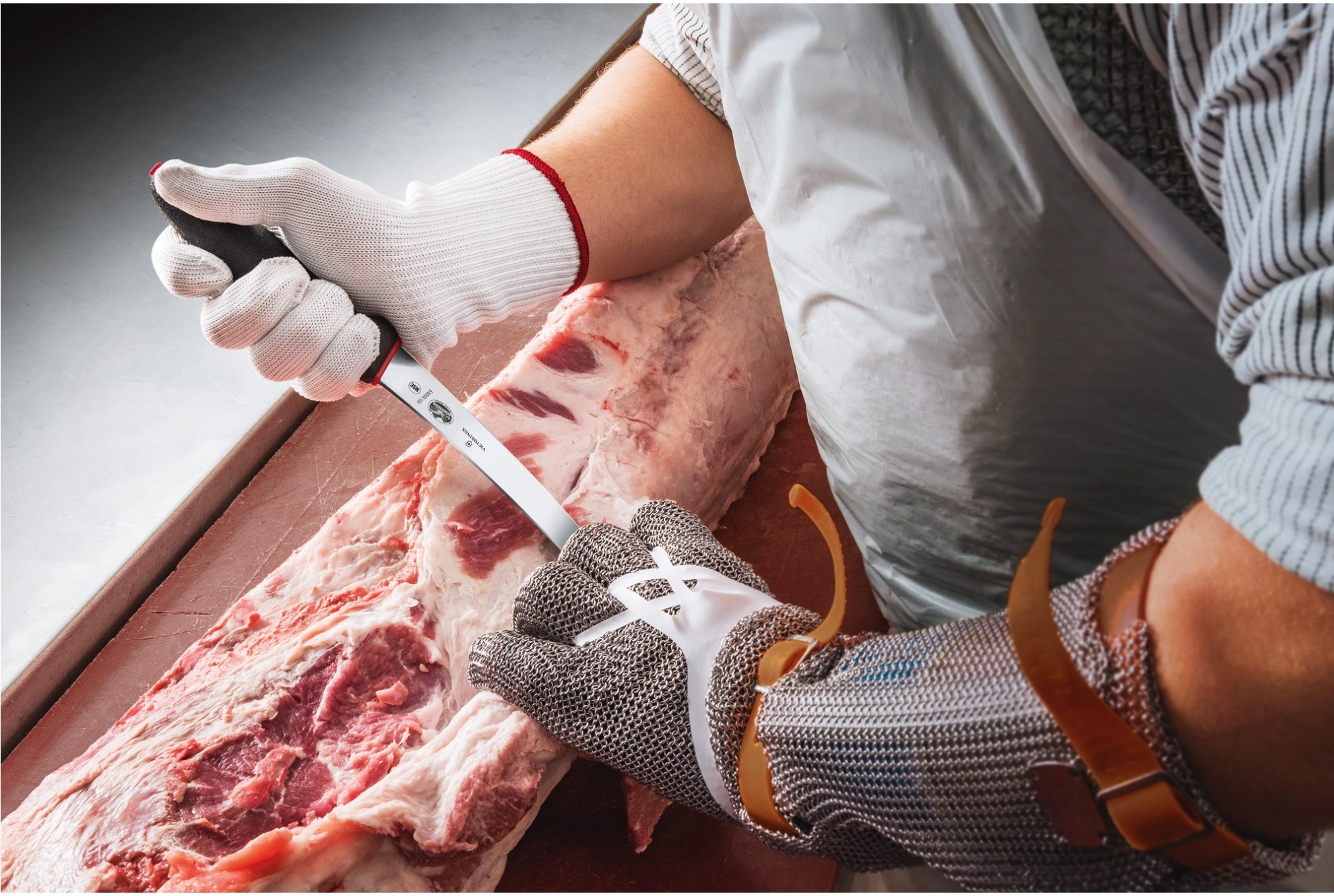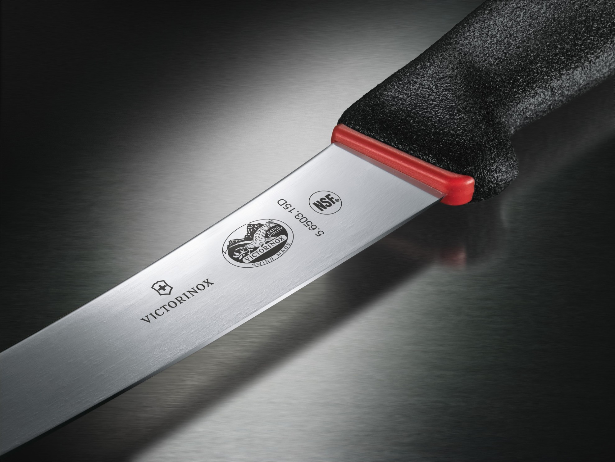 Vykošťovací nůž se speciální protiskluzovou ergonomickou rukojetí Fibrox dual grip vyrobenou ze dvou komponentů - z polypropylenu (vnitřní část) a termoplastu (vnější část).