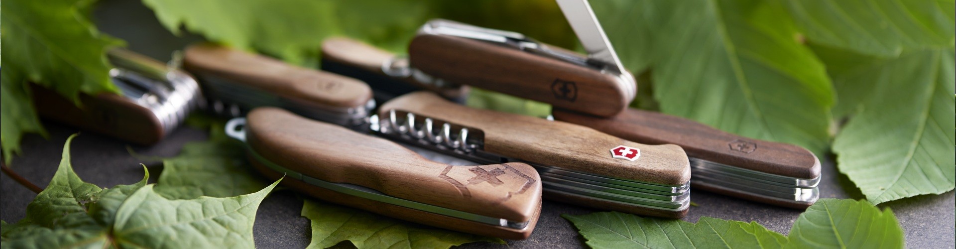 Jak název napovídá, v kolekci dřevěných nožů Wood se styl snoubí s přírodou. Byly vybrány některé z nejvíce ikonických modelů kapesních nožů Victorinox a obohaceny o dotek přírody. Střenky nožů jsou vyrobeny z ořechového dřeva pocházejícího z evropských lesů a tím pádem se mohou pyšnit tím, že jsou vyrobeny z obnovitelného materiálu. Ořechové dřevo navíc vypadá velice esteticky a je mimořádně odolné.